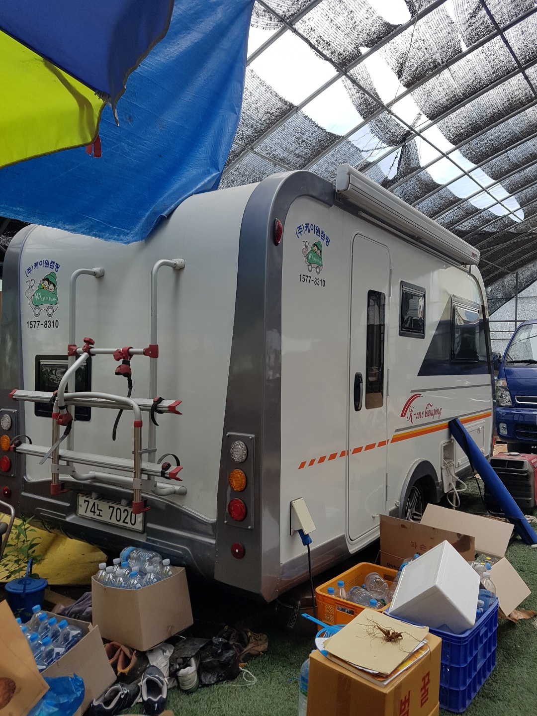 자전거  거치대.어닝.수납 공간  많음.
