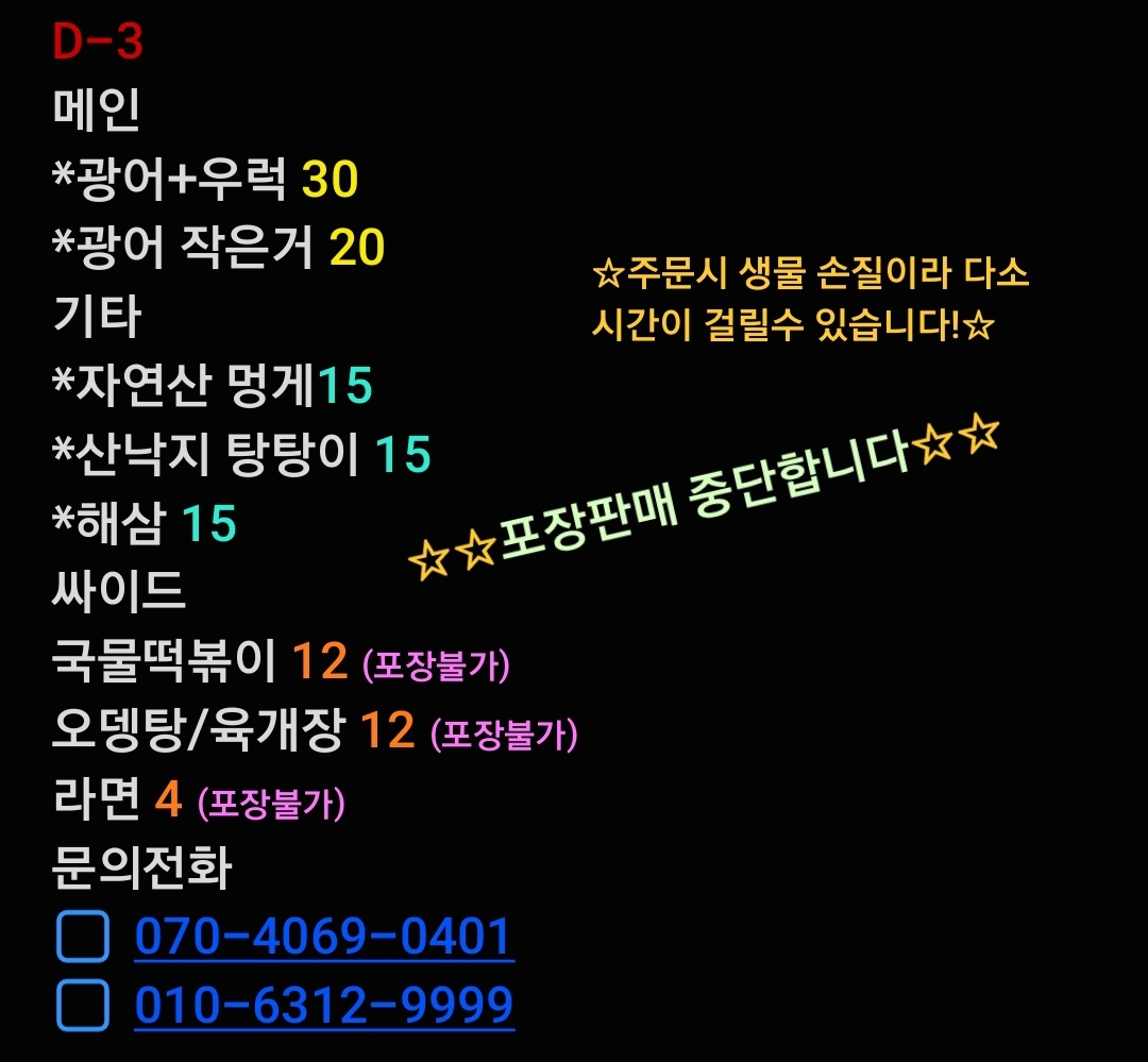 평창 삼태기 식당 파트타임 및 종일반(월300 이상) 구인