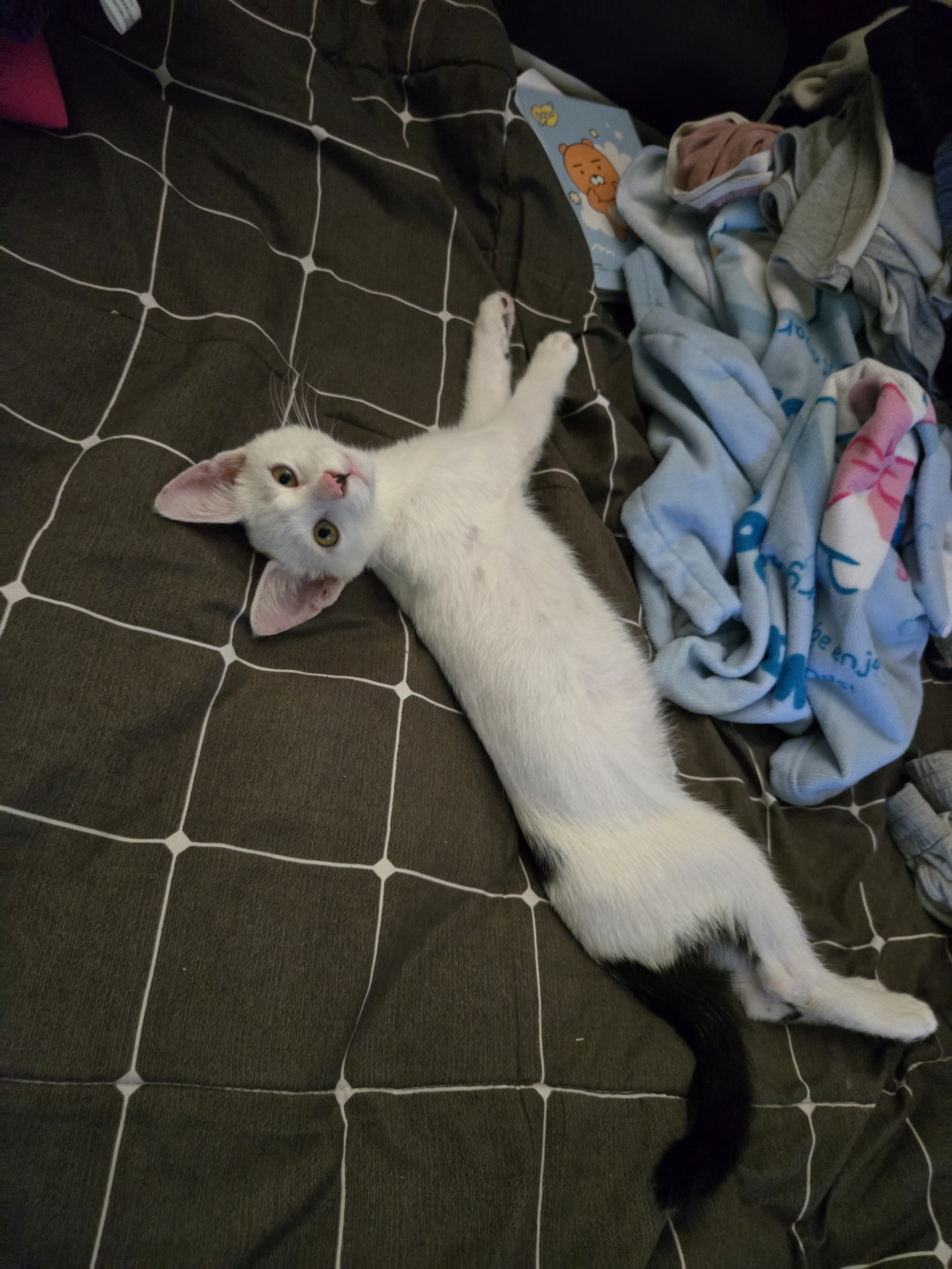 저는 사정이 되지않아 키울수 없어 임보 중입니다~ 애교도 많고 아직 아기고양이로 보여집니다 책임감 있으시고 사랑많이 주실 집사님을 찾고있습니다~ 혼자도 잘 놀고 잘땐 꼭 옆에 붙어 자기도 합니다 낫가림도 없어서 귀엽습니다!! 무늬가 동글동글 있어 현재 이름은 땡이 입니다~