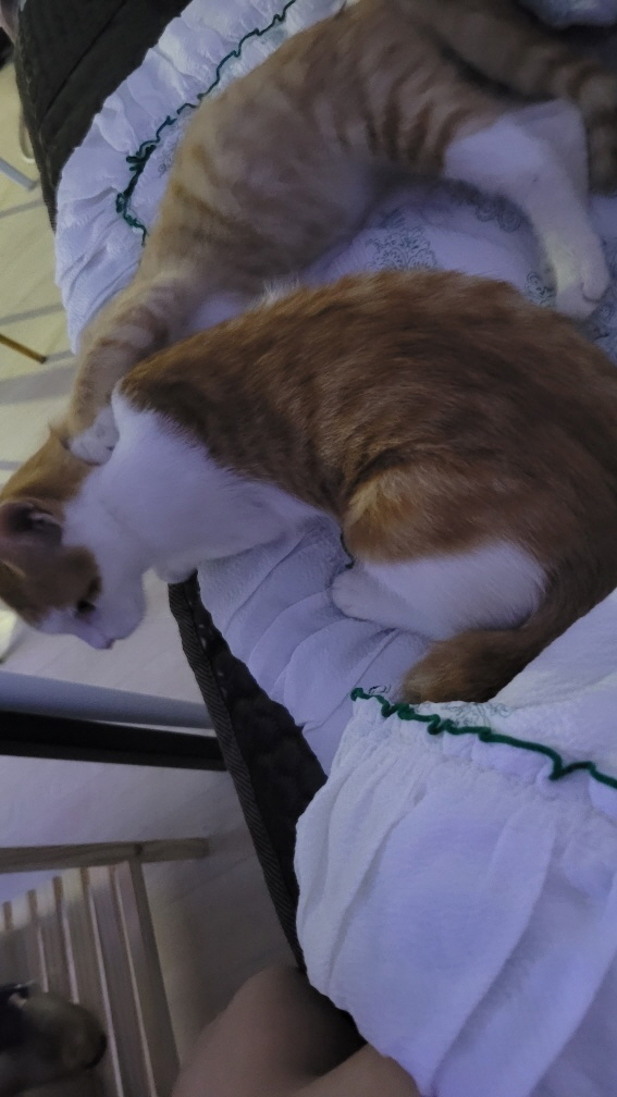 (둘이 형제인데 왼쪽냥이가 더 작고 오른쪽냥이가 조금 큽니다)