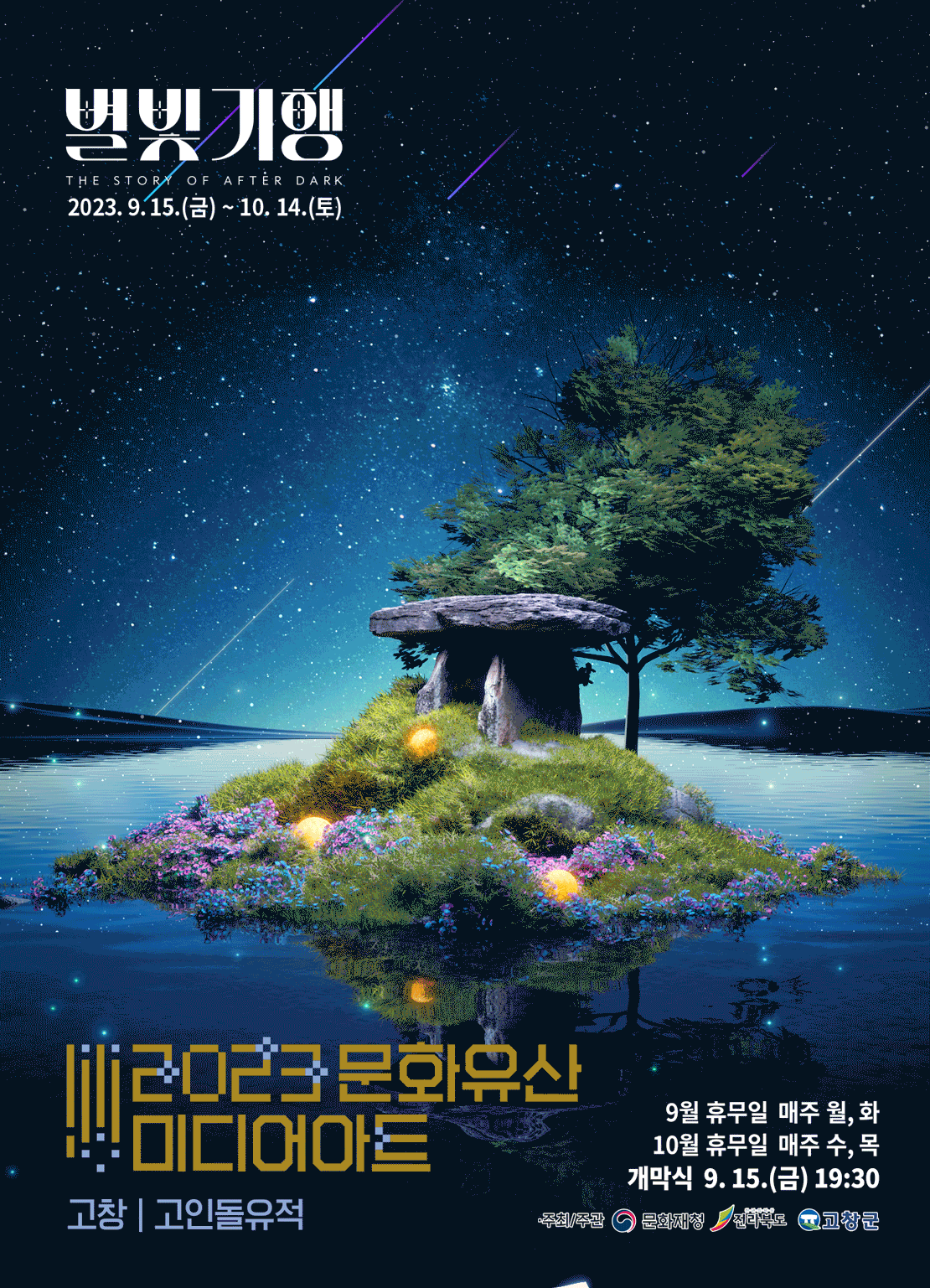 우리나라 유일의 선사시대 세계유산인 ‘고창 고인돌유적’의 탁월한 보편적 가치를 모든 분들이 친숙하게 즐길 수 있도록 고창 고인돌유적에 실감형 미디어아트 기술을 접목한 2023 고창 고인돌유적 문화유산 미디어아트가 2023년 9월 15일 개막식(19:30)을 시작으로 약 한달간 고창 고인돌유적과 고인돌박물관 일원에서 펼쳐집니다. 많은 관심과 관람 부탁드립니다.