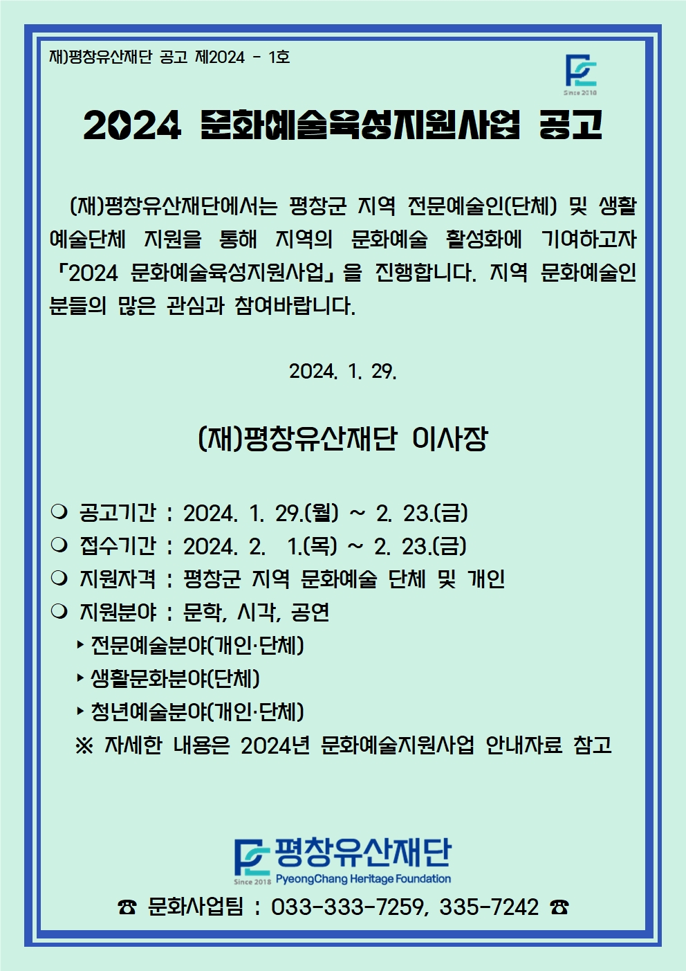 평창유산재단 홈페이지(http://pchf.or.kr) 공지사항에 게시