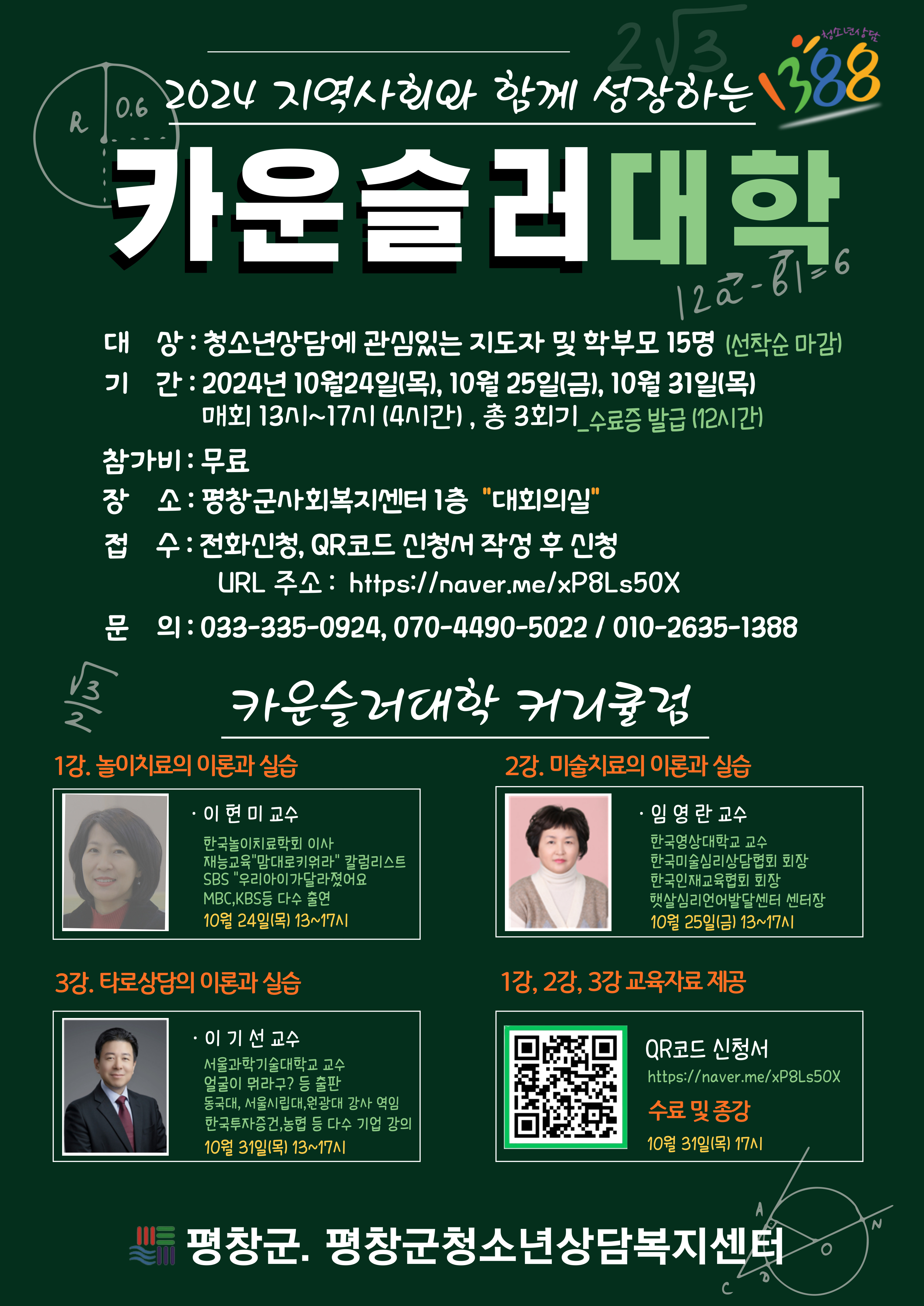2024년 카운슬러대학은 매채상담의 이론과 실습을 중심으로 진행합니다.