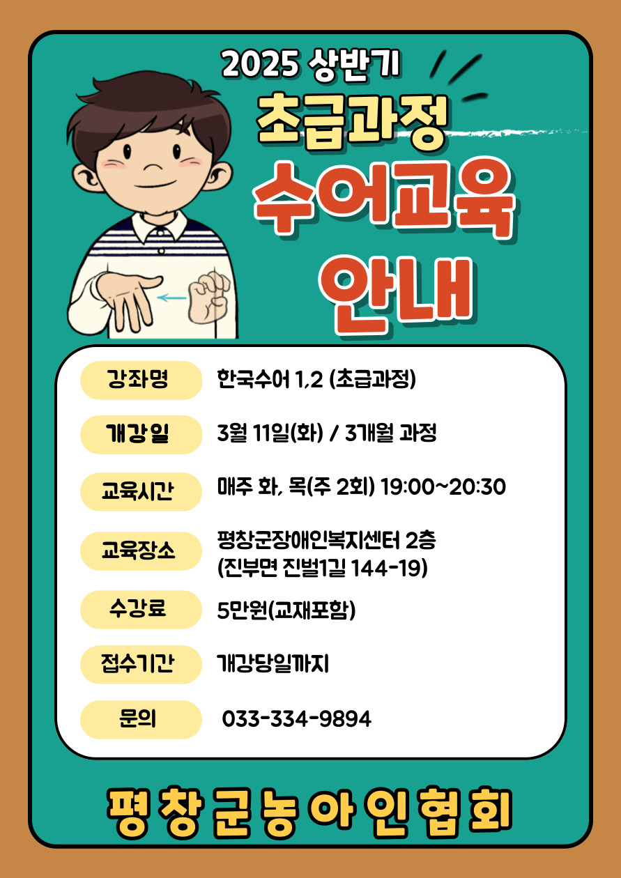 4. 교육장소: 평창군장애인복지센터 2층 농아인협회(진부면 진벌1길 144-19)