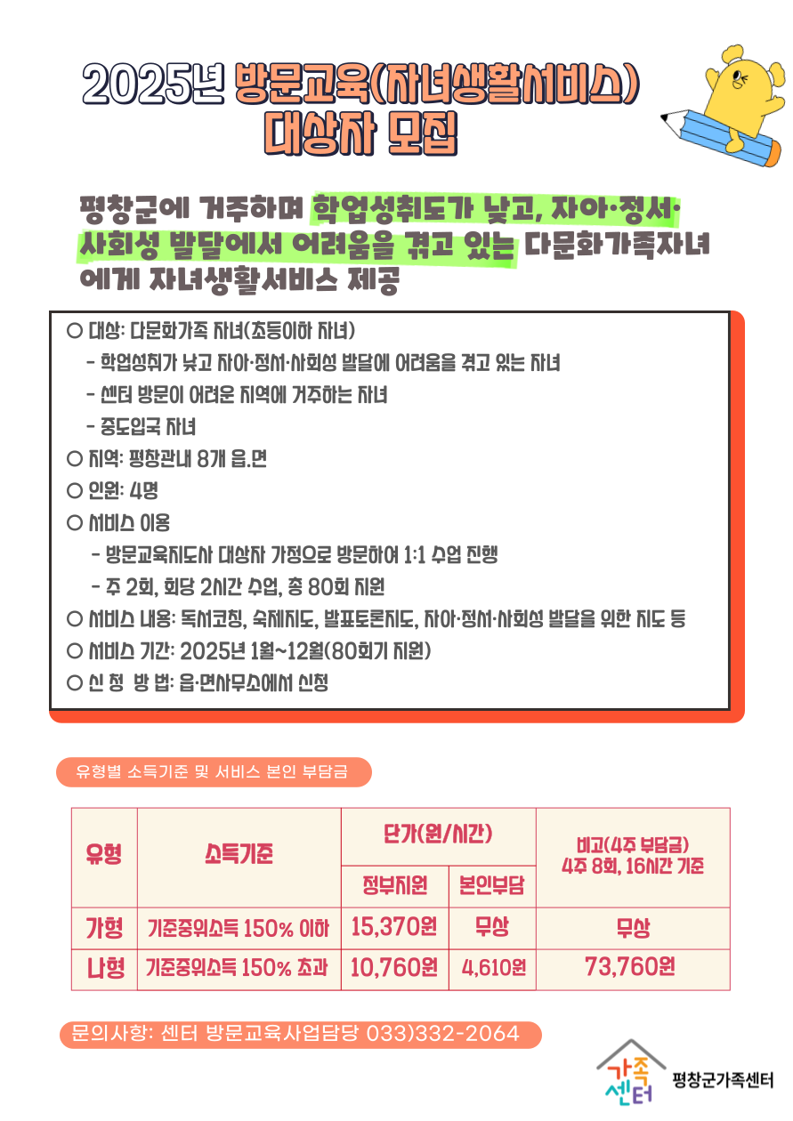 2025년 방문교육(자녀생활서비스) 대상자모집