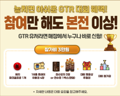 (해치 파크골프공 1개 + 연습 이용권 4장 + 천수당차 3병 + 대회 행운상 추첨권 + 대회 참가권)