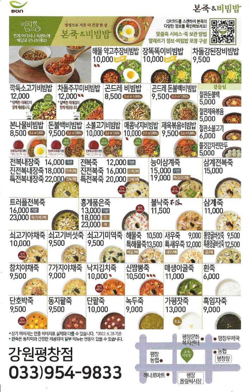 본죽 강원평창점 Tel. 033-954-9833
