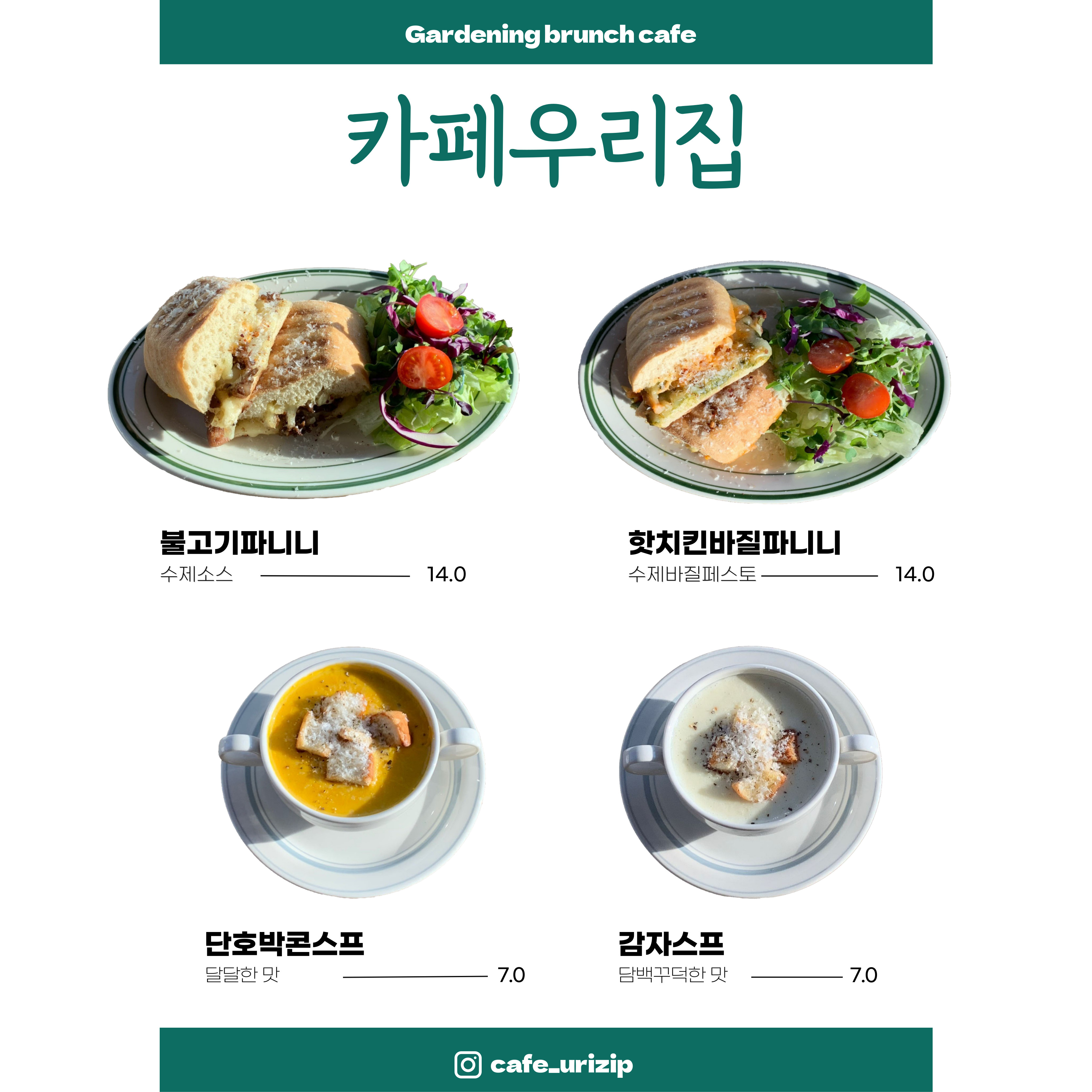 불고기파니니와 핫치킨바질파니니, 감자스프와 단호박콘스프가 준비되어있으니