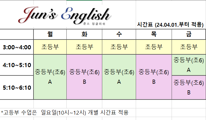 준스 잉글리쉬 4월 신규원생 모집-평창중학교 앞 카페 2층