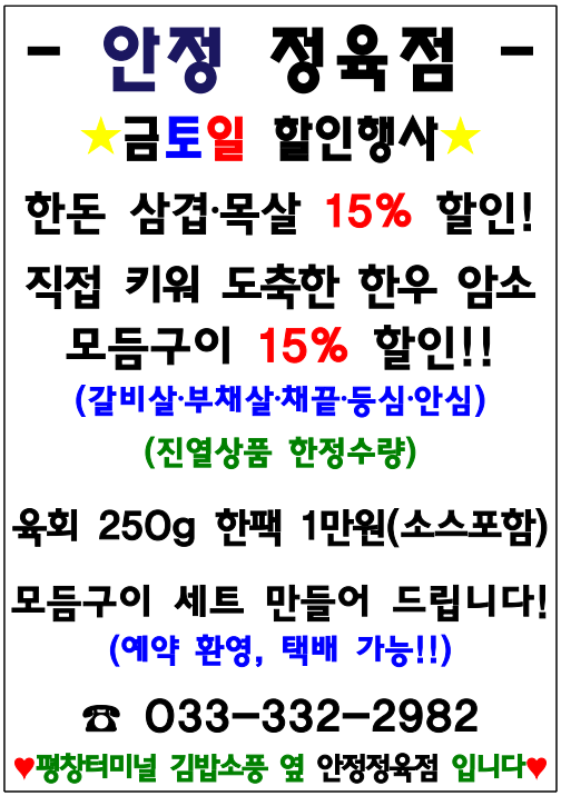 안정정육점 금.토.일 행사