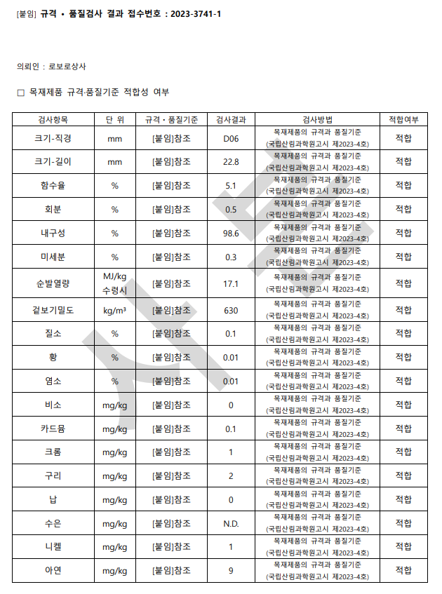 품질기준 A1 1등급 품질의 목재펠릿을 판매, 공급 합니다.