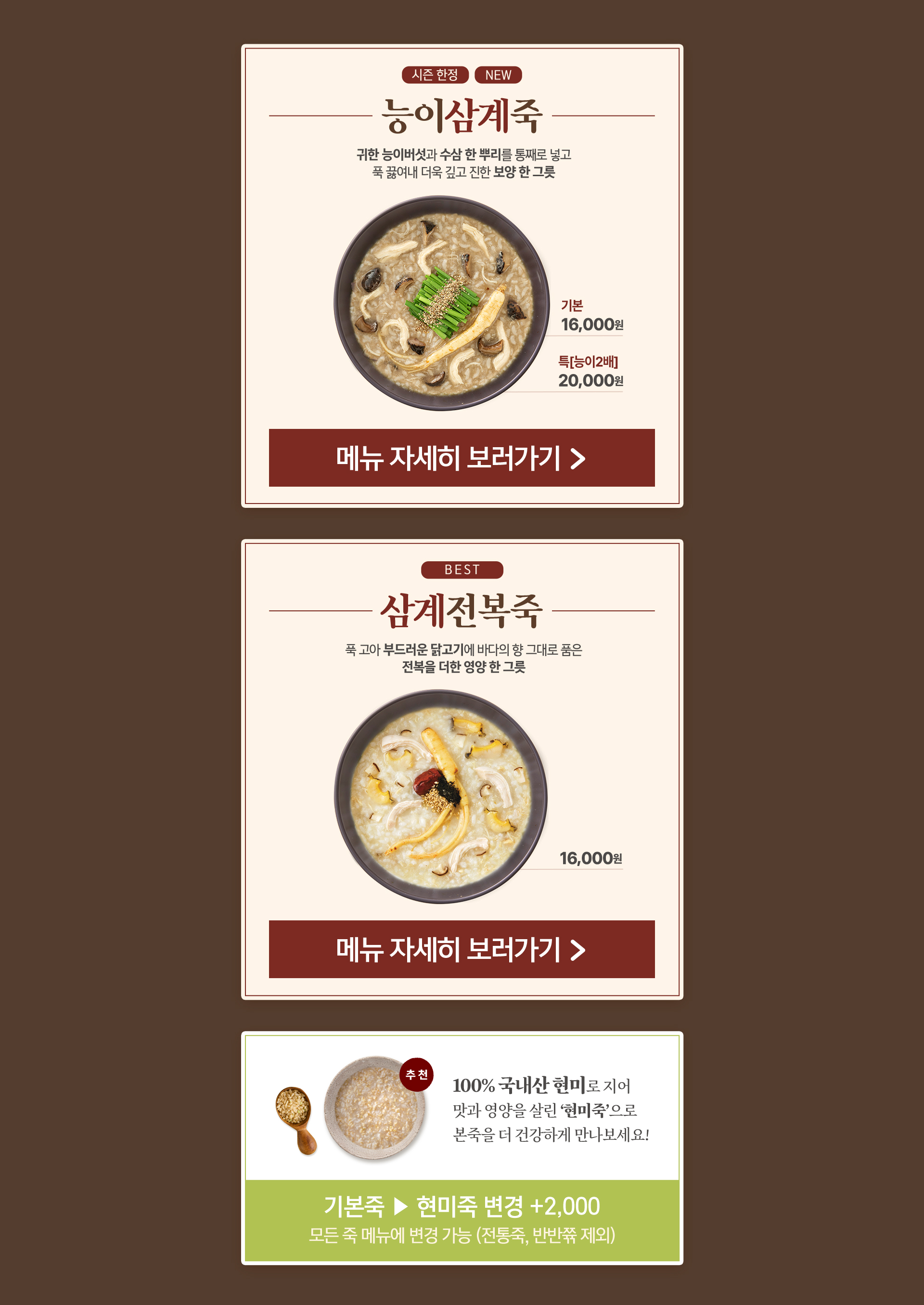 [본죽앤비빔밥] "능이삼계죽과 돈불백열무비빔밥" 계절 메뉴! 출시!!