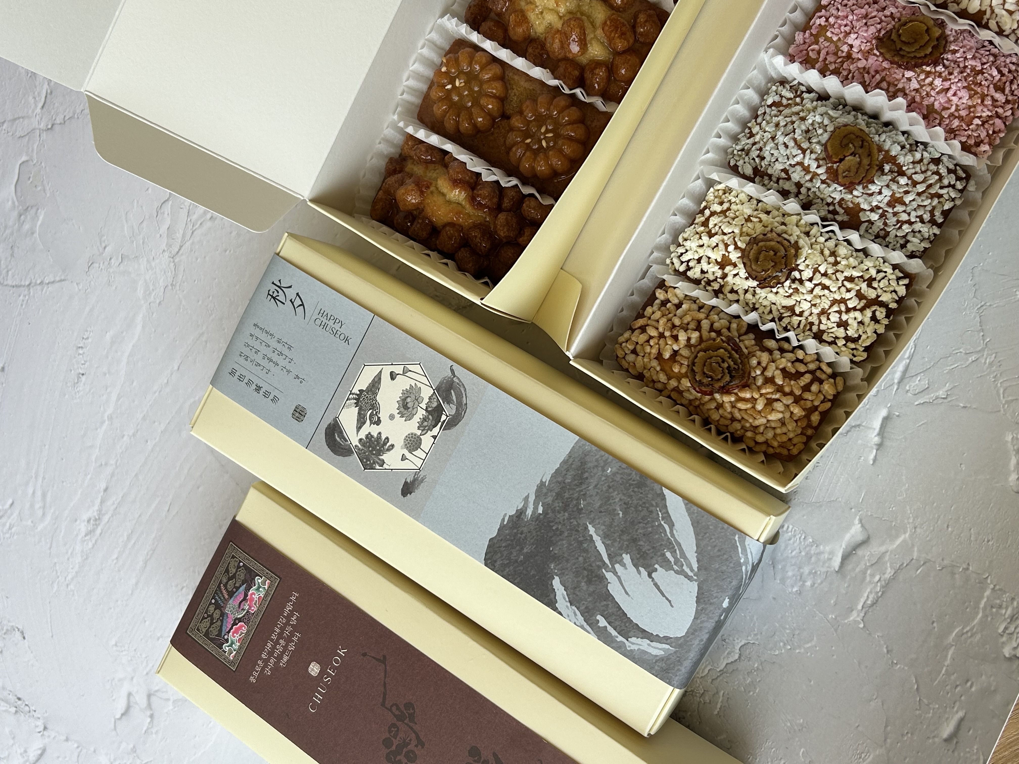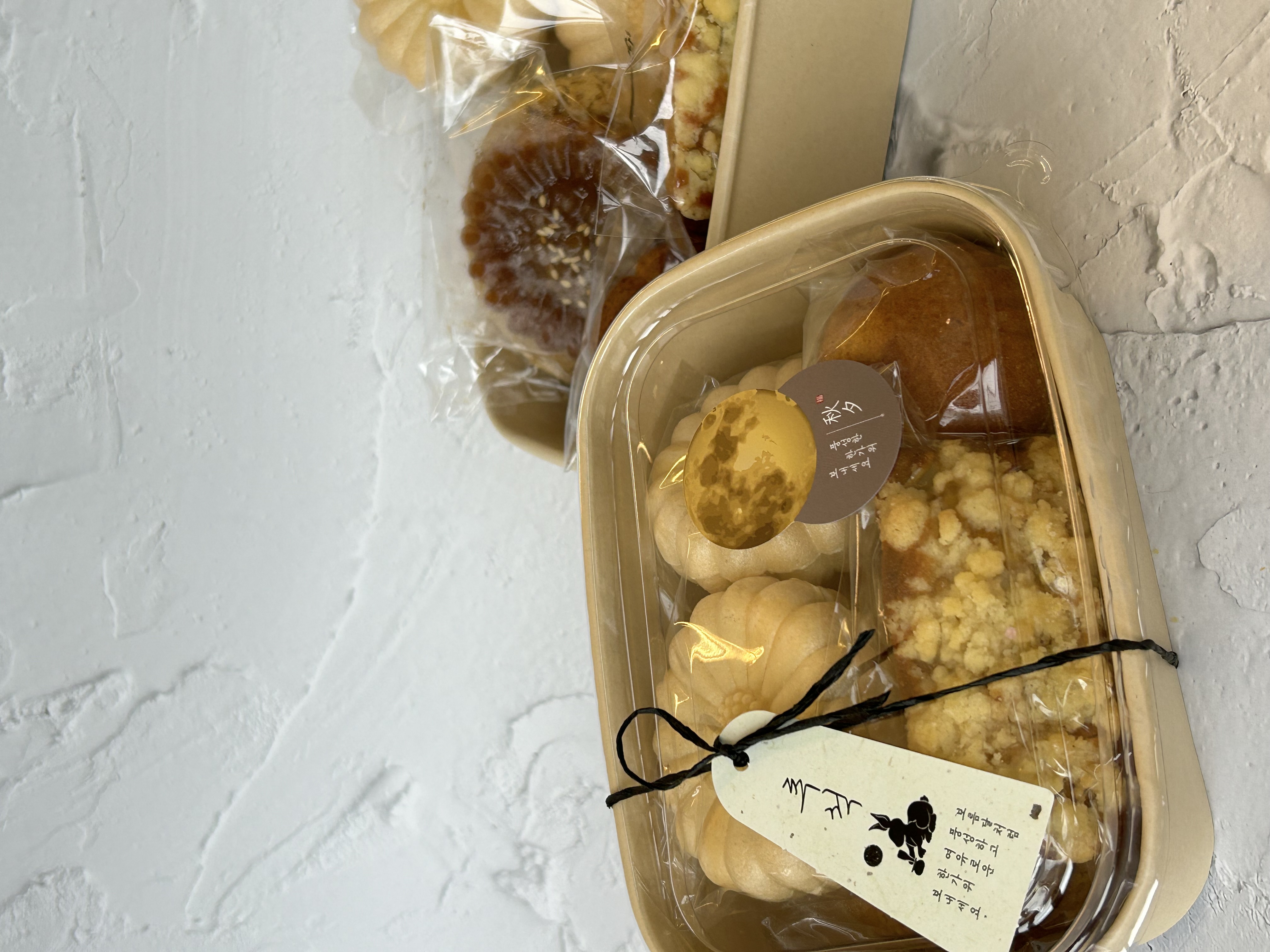 사각상자구성 - 약과쿠키, 모나카(팥앙금, 말차앙금 ), 보늬밤마들렌, 애플크럼블 휘낭시에  (20,000원)