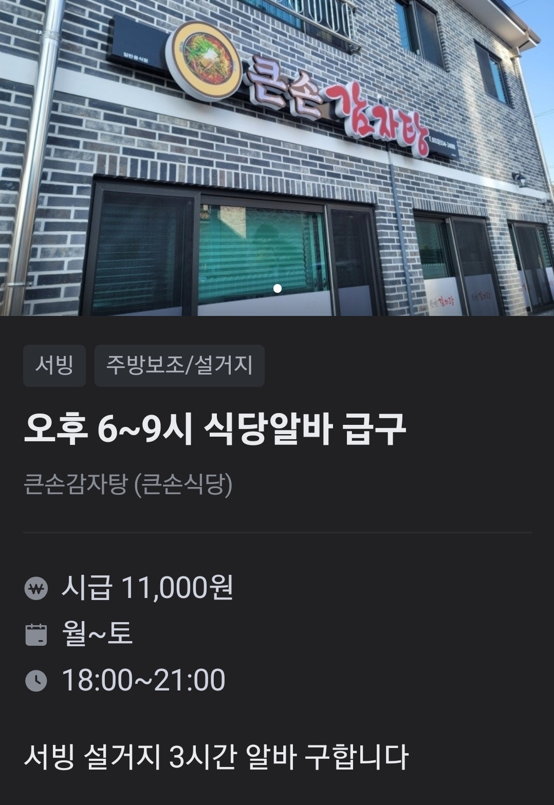 급구 큰손감자탕 저녁알바 (오후6~9)