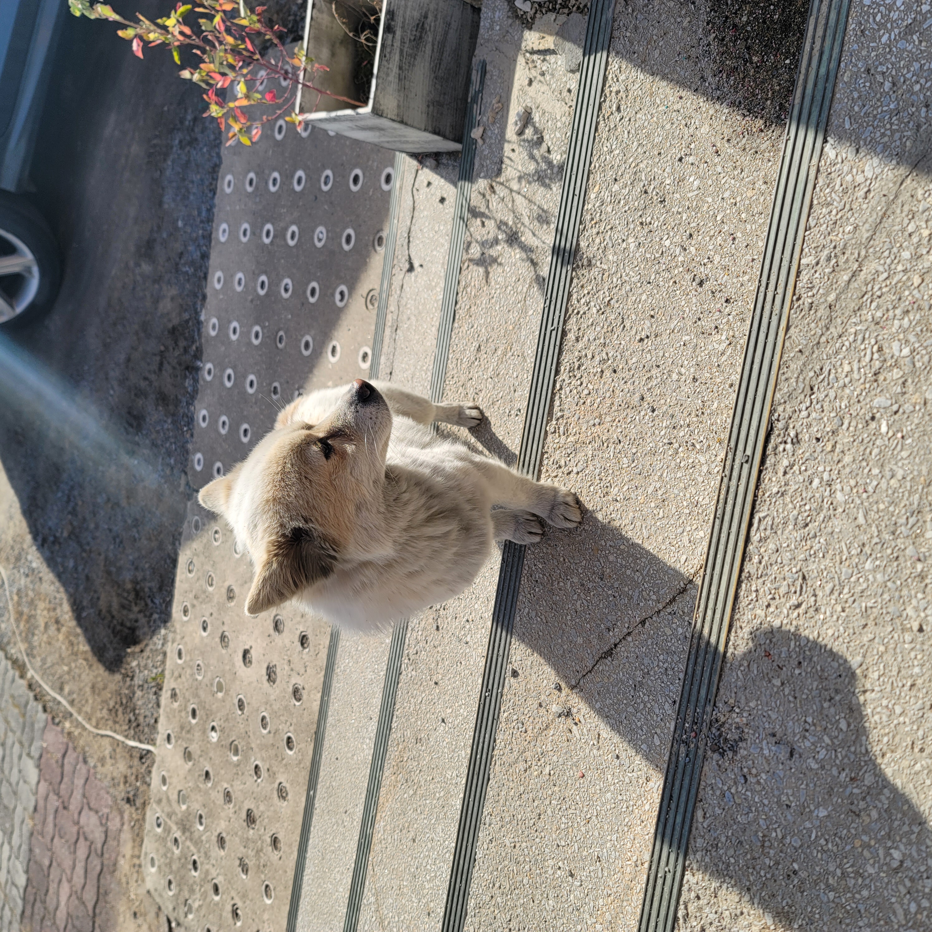 사람 잘따르는걸보니 누군가 잃어버리신거같은데 혹시 아시는분있으시면 말씀해주세요 자꾸 도로로 나가서 위험하기도하네요, 나이가 많아보이진 않아요