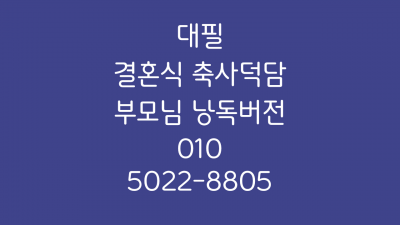 아들 딸 결혼 축사 덕담 때문에 고민하고 계시다면, 언제든지 의뢰 주시고 대필 받아 가시기 바랍니다. 미리미리 준비하셔서 멋진 축사로 자녀들에게 잊지 못할 감동을 선사하세요. 문의 O!O-5O22-88O5