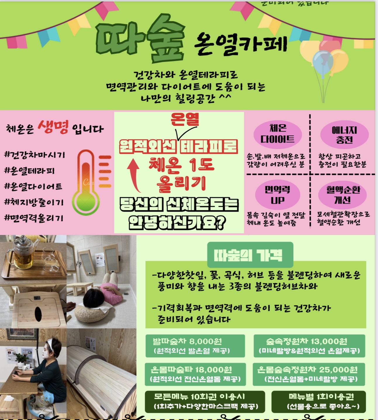 저희 "따숲"온열카페는 몸을 따뜻한 온도로 유지시키면서