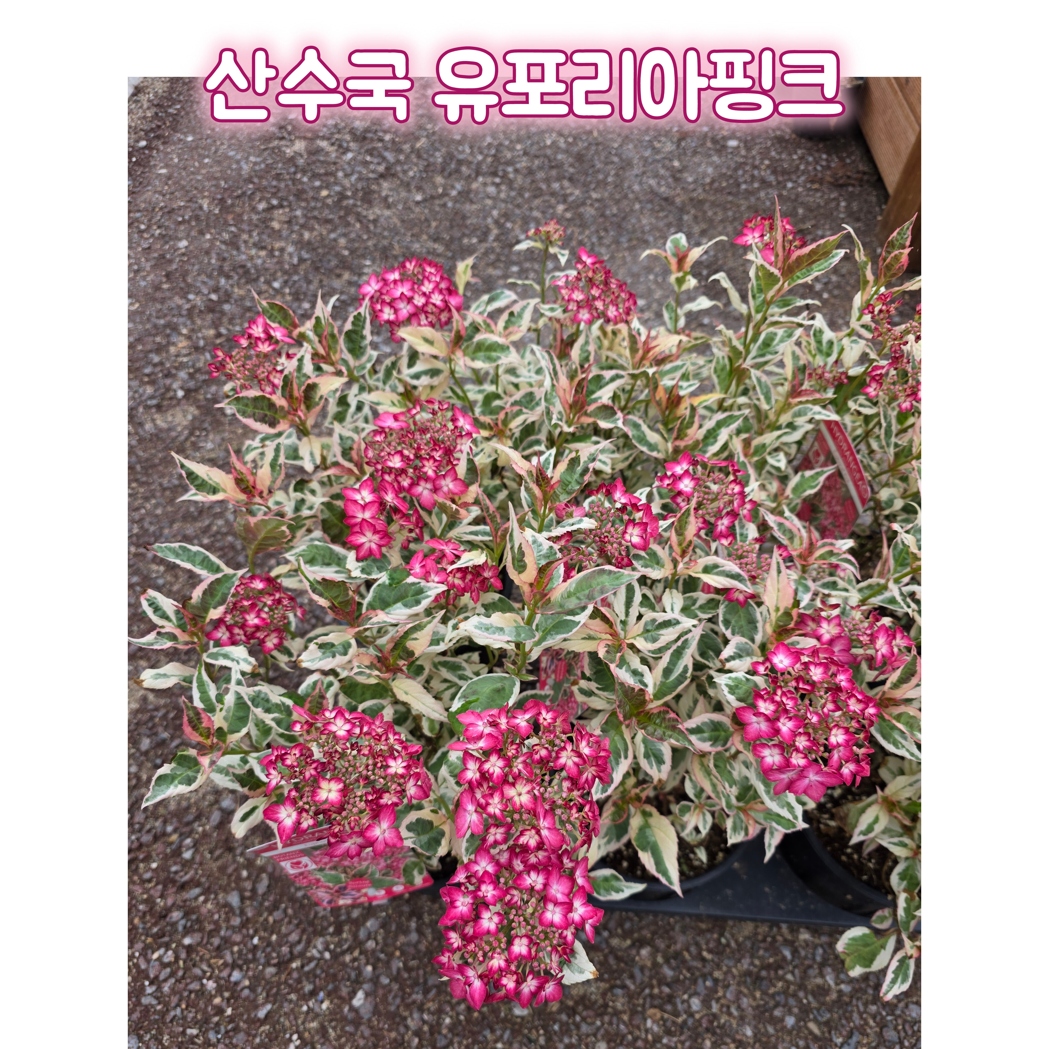 요즘 핫한 정원에서 볼 수 있는 국수나무 타이니와인, 최신품종 무늬산수국 유포리아핑크 입니다.