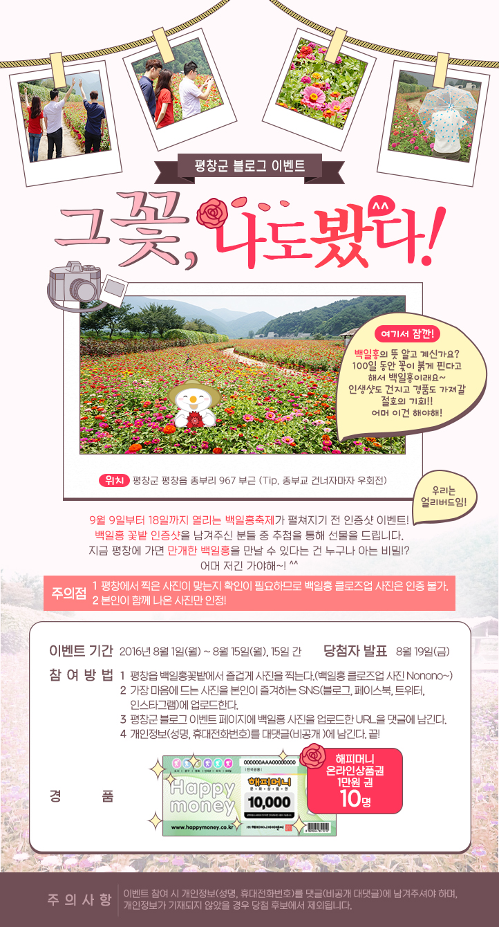 평창군 SNS(블로그) 이벤트 많이 참여해주세요! (백일홍꽃밭 인증샷) 8/1~15일까지!