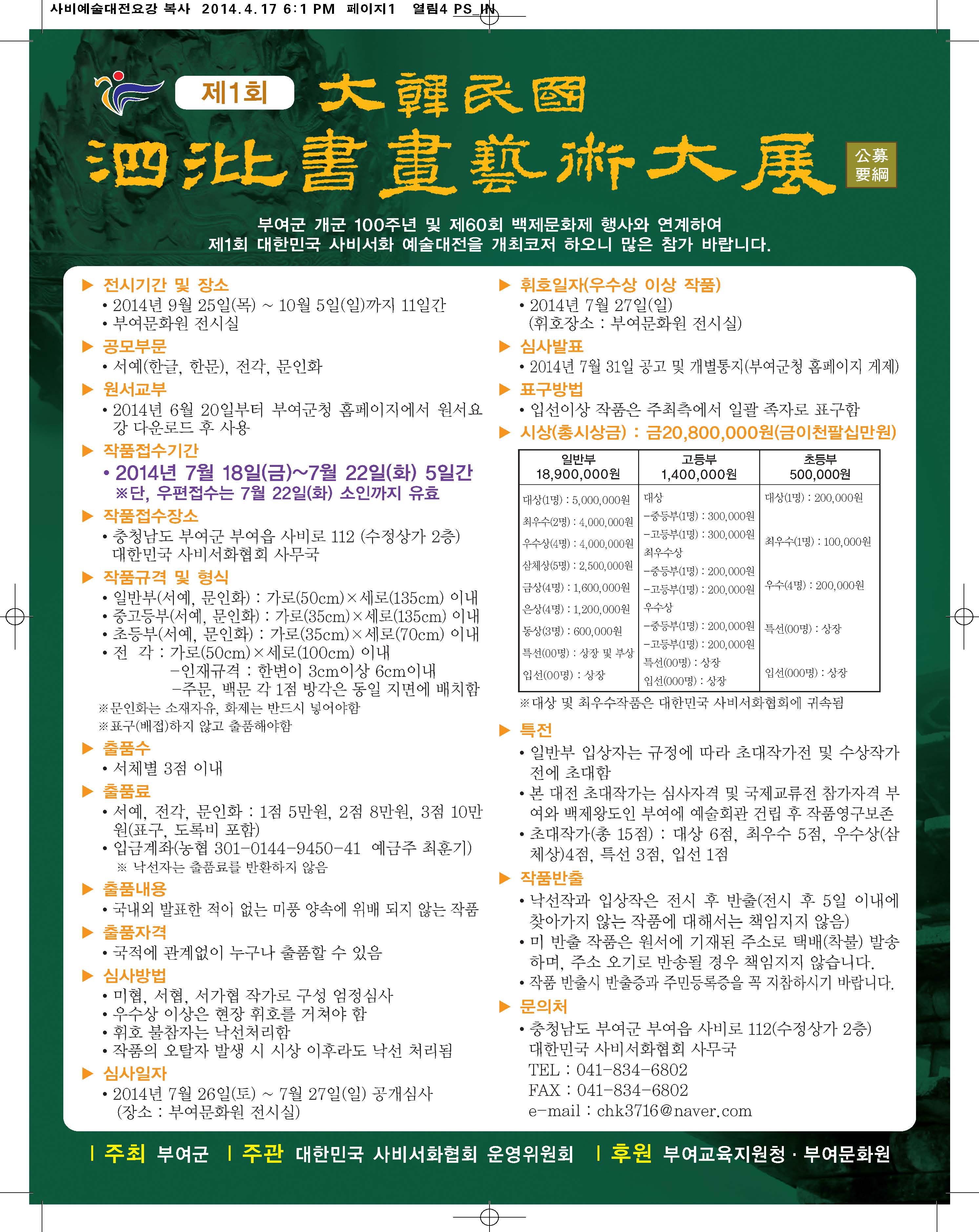 대한민국 사비서화협회 사무국 ☎041)834-6802, 833-6801