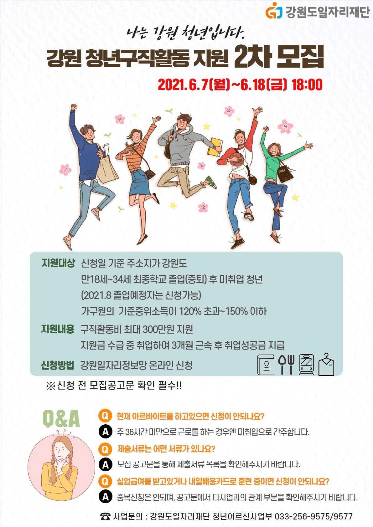 「2021년 강원도 청년구직활동 지원사업」 2차 모집 안내