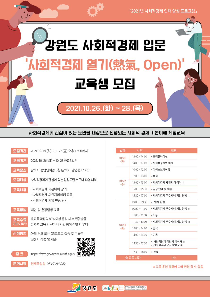 ○ 문 의 처 : 강원도사회적경제지원센터 인재육성팀 (033-749-3982)