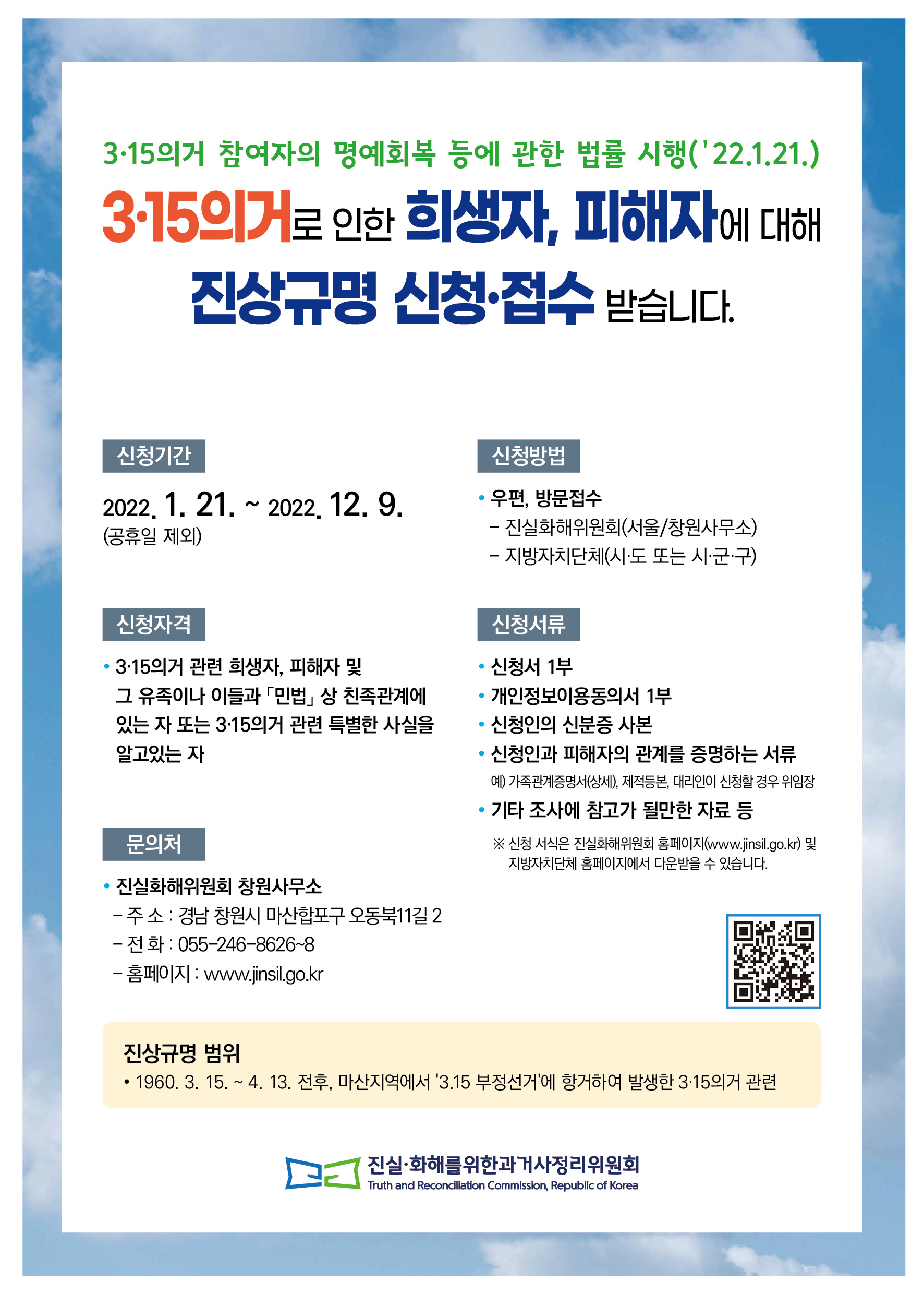 ○ 이에 따라 「3·15의거 진상규명 신청」과 관련하여, 아래와 같이 안내드립니다.