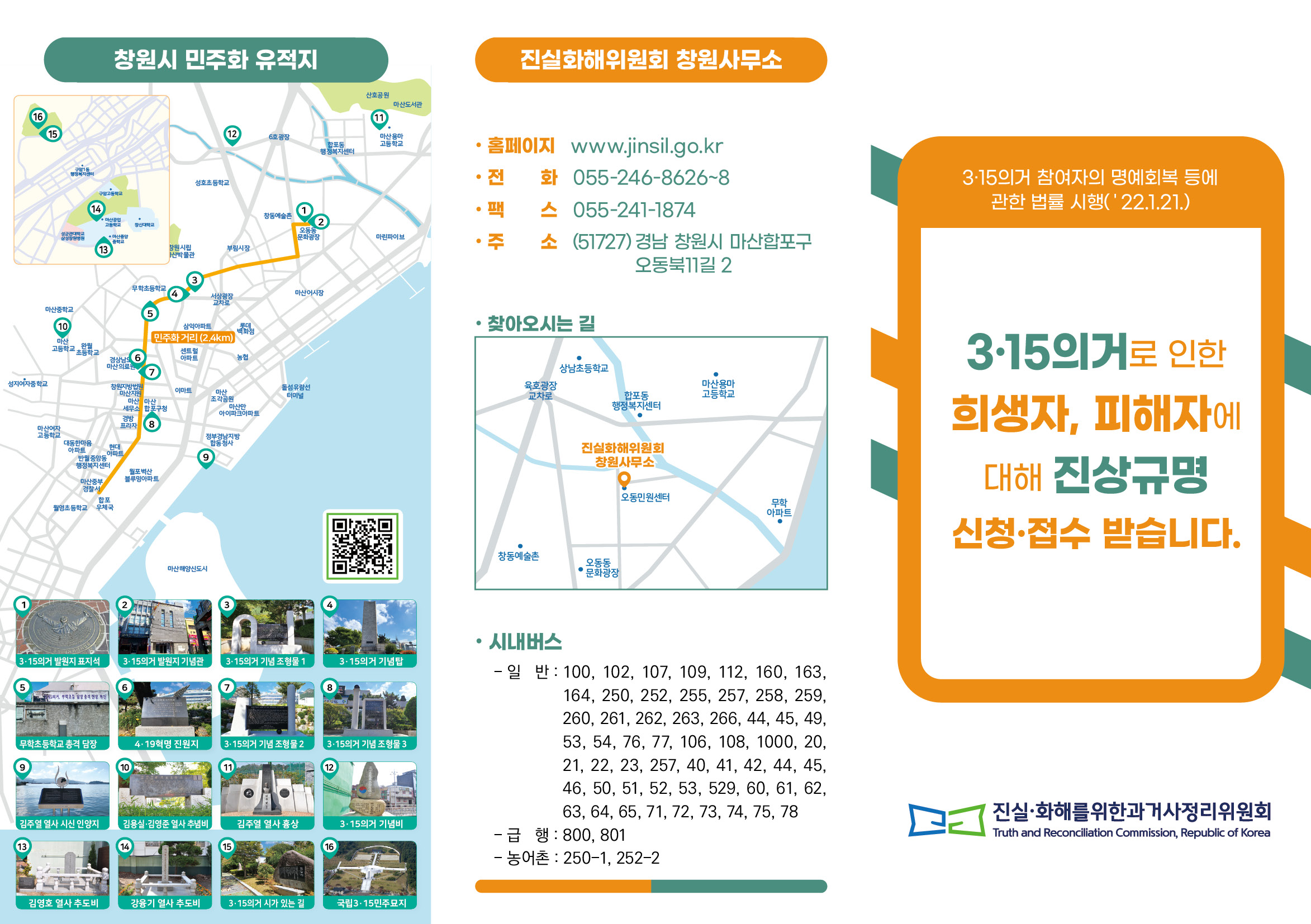 문 의 처 | 진실화해위원회 3·15의거과 - 주 소 : 경남 창원시 마산합포구 오동북11길 2 - 전 화 : 055-246-8626~8 - 홈페이지 : www.jinsil.go.kr 평창군청 행정과 자치행정팀 - 전 화 : 033-330-2240 |