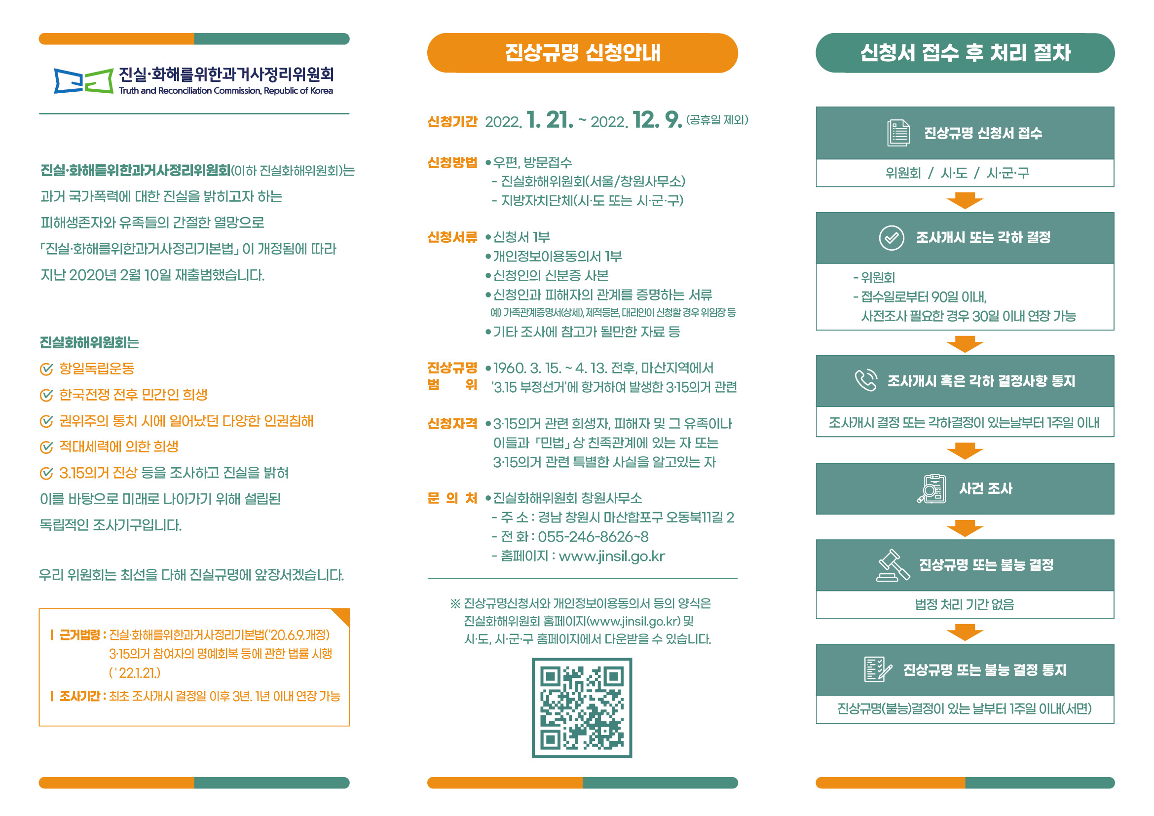 신 청 방 법 | 우편·방문접수 (진실화해위원회 또는 각 시·도 및 시·군·구) |