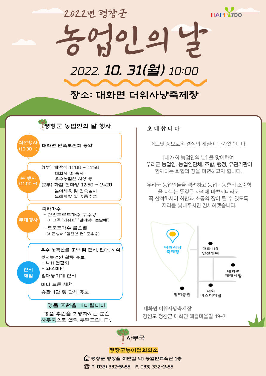 《 2022년 평창군 농업인의 날 행사 개최 알림 》
