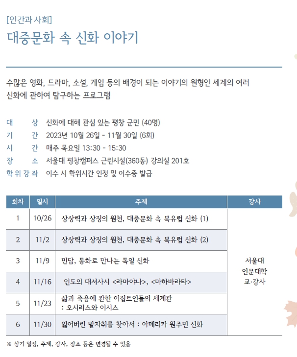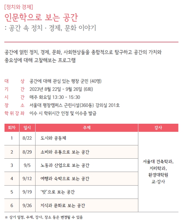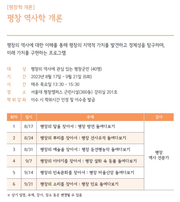 2023년 2학기 "HAPPY700평창 시민대학" 수강생 추가 모집을 아래와 같이 안내합니다.