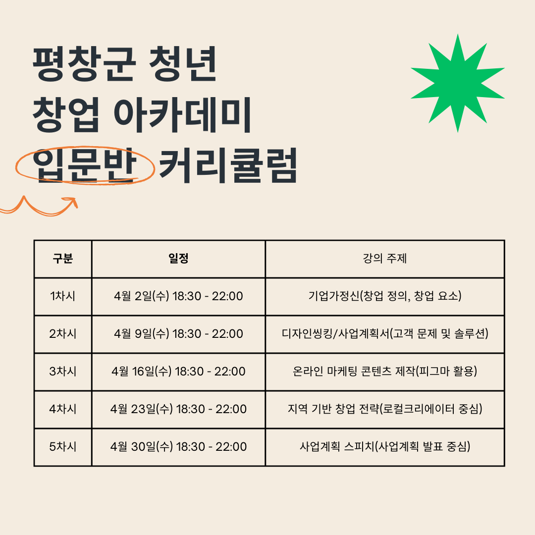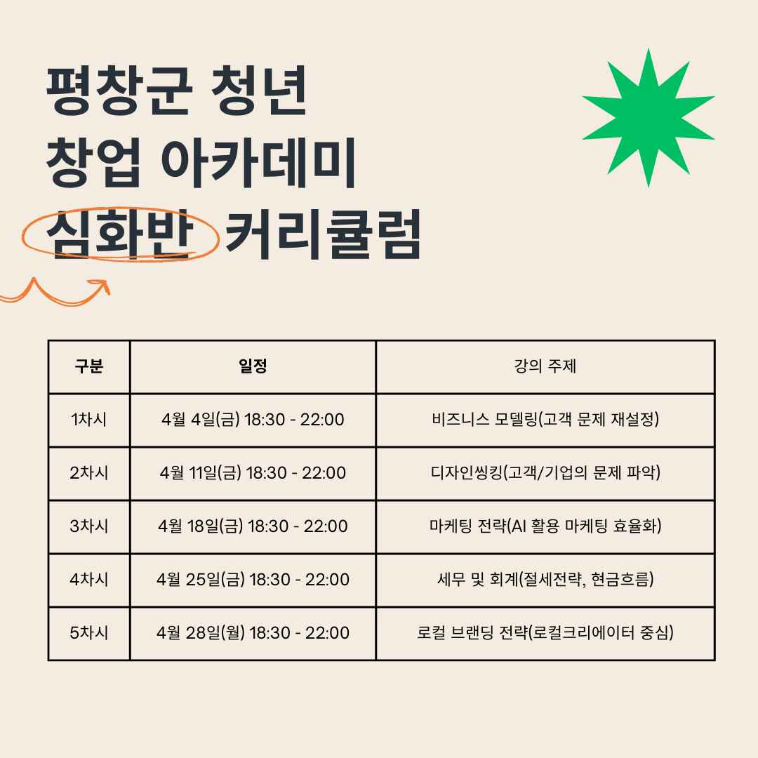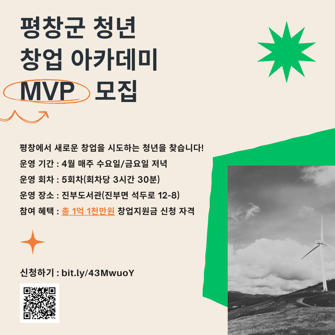 2025년 평창군 청년 창업아카데미 MVP 입문반 & 심화반 참여자 모집 안내