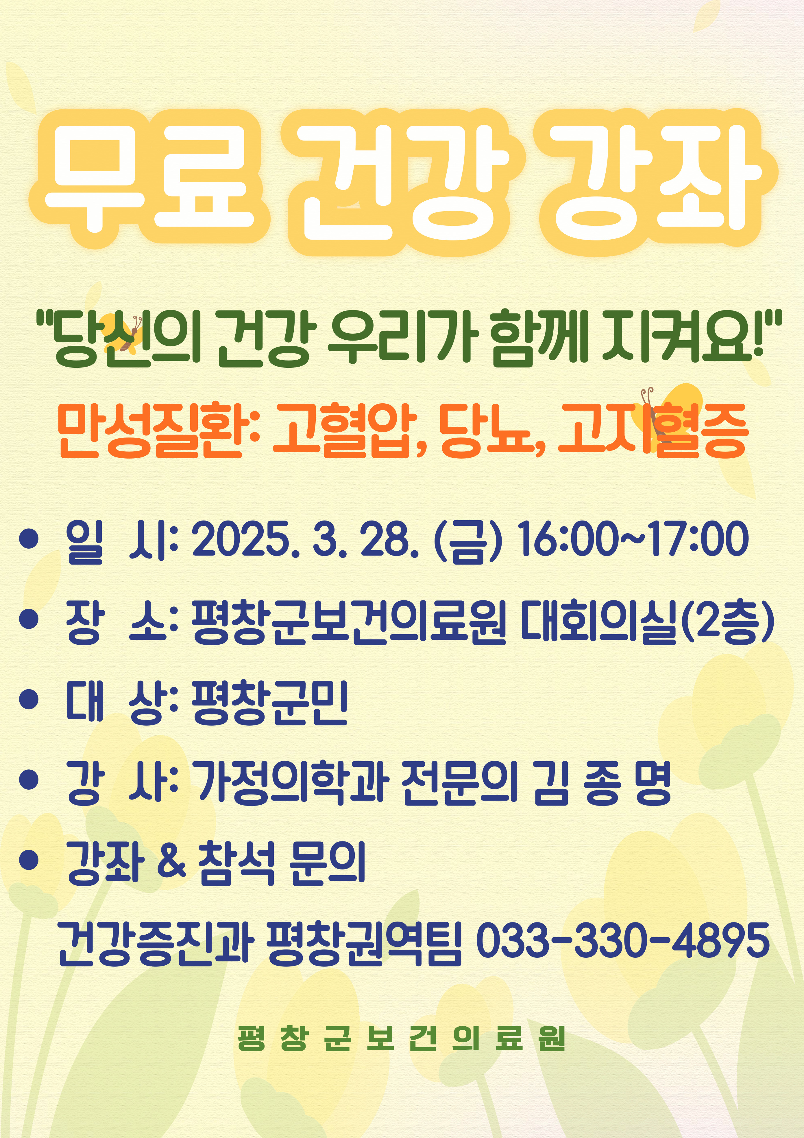 2025년 평창군보건의료원 무료건강강좌 운영 안내