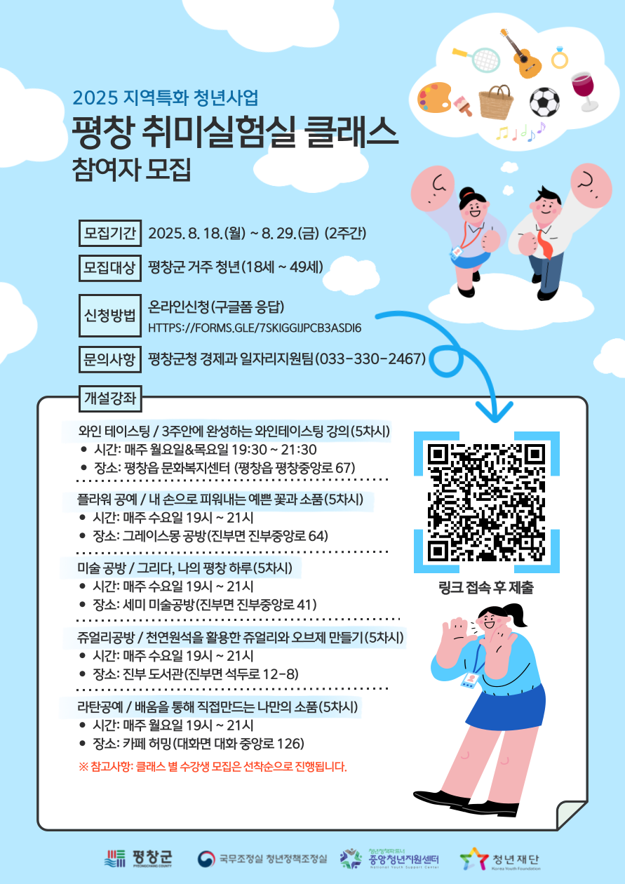 2025년 지역특화 청년사업 평창 취미실험실 클래스 참여자 모집