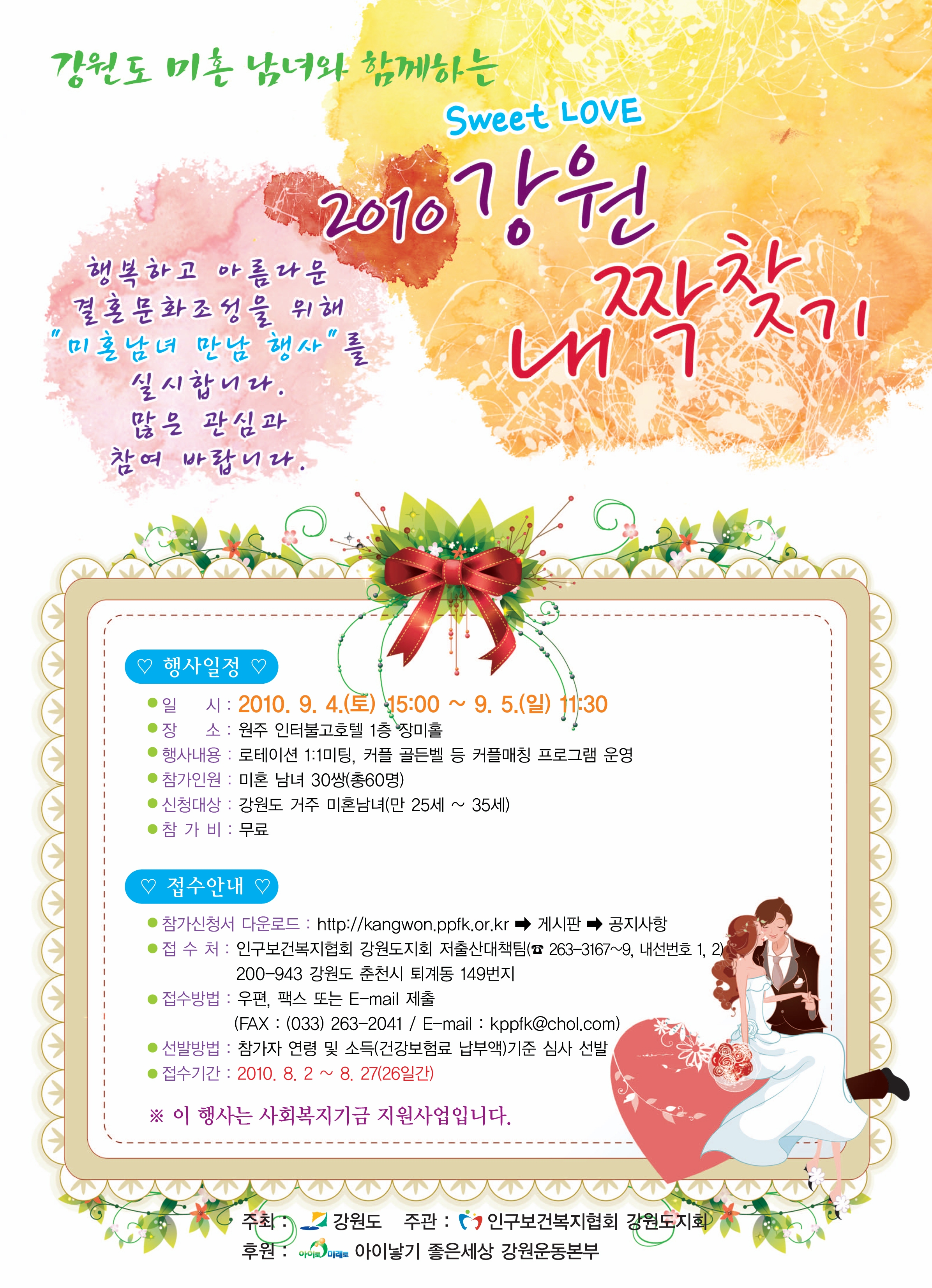 ㅇ행사명 :「2010년 강원 내짝찾기」미혼 남녀 만남의 날 행사