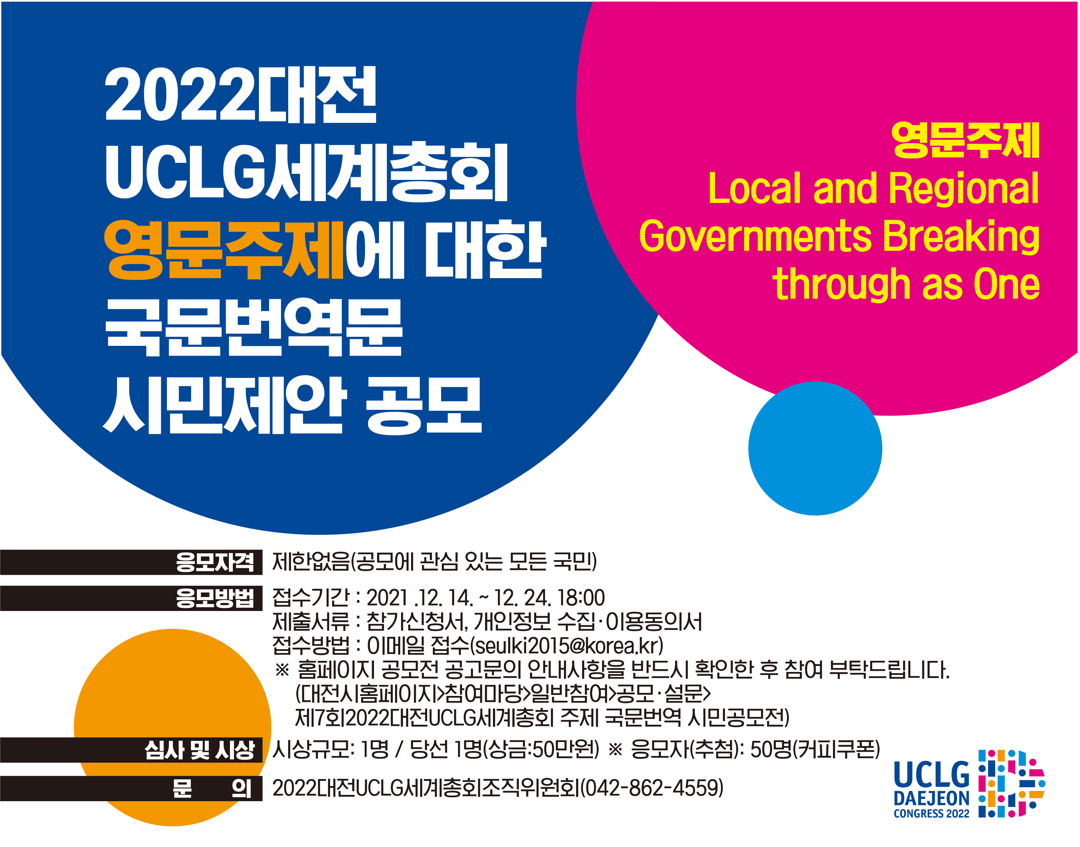 공 모 명: 2022대전UCLG세계총회 주제 국문번역 시민 공모전