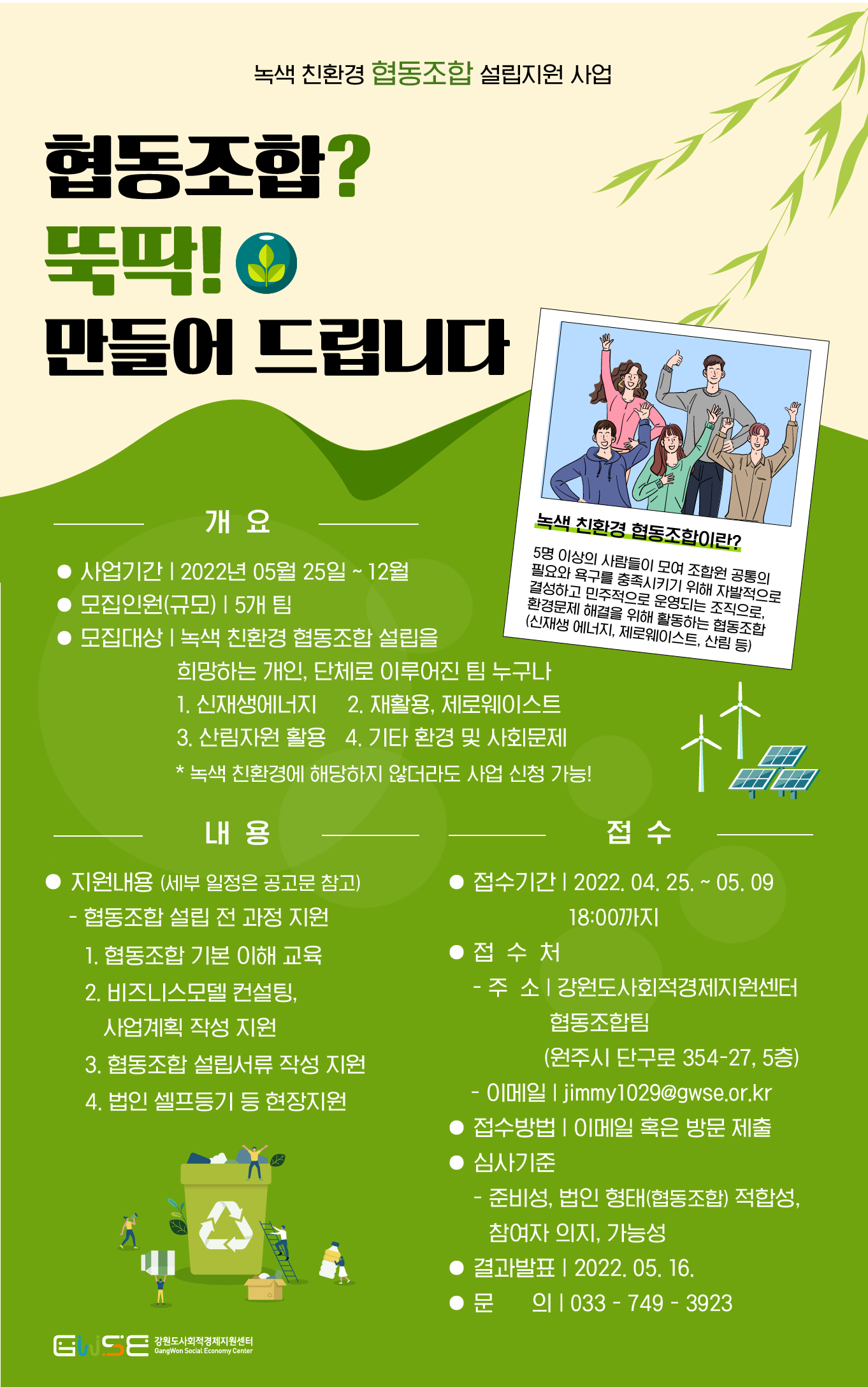 「2022 녹색 친환경 협동조합 설립지원 사업」 참여자 모집 공고