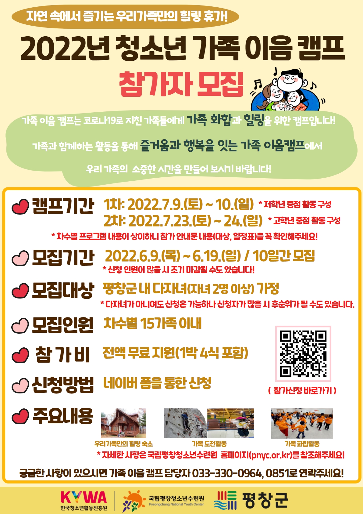 2022년 청소년 가족 이음 캠프 참가자를 모집하오니 많은 관심과 참여 바랍니다.