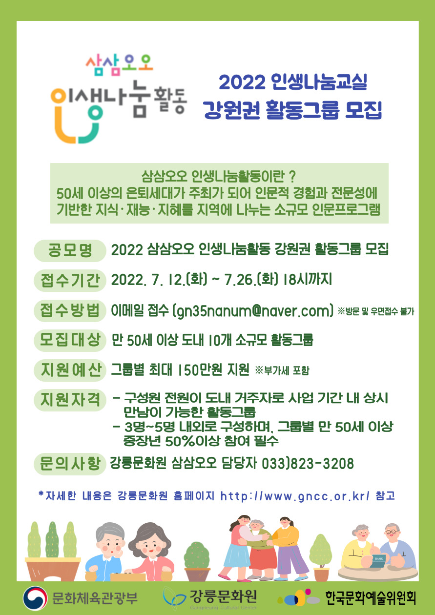 ㅇ 사 업 명 : 2022 인생나눔교실「삼삼오오 인생나눔활동」강원권