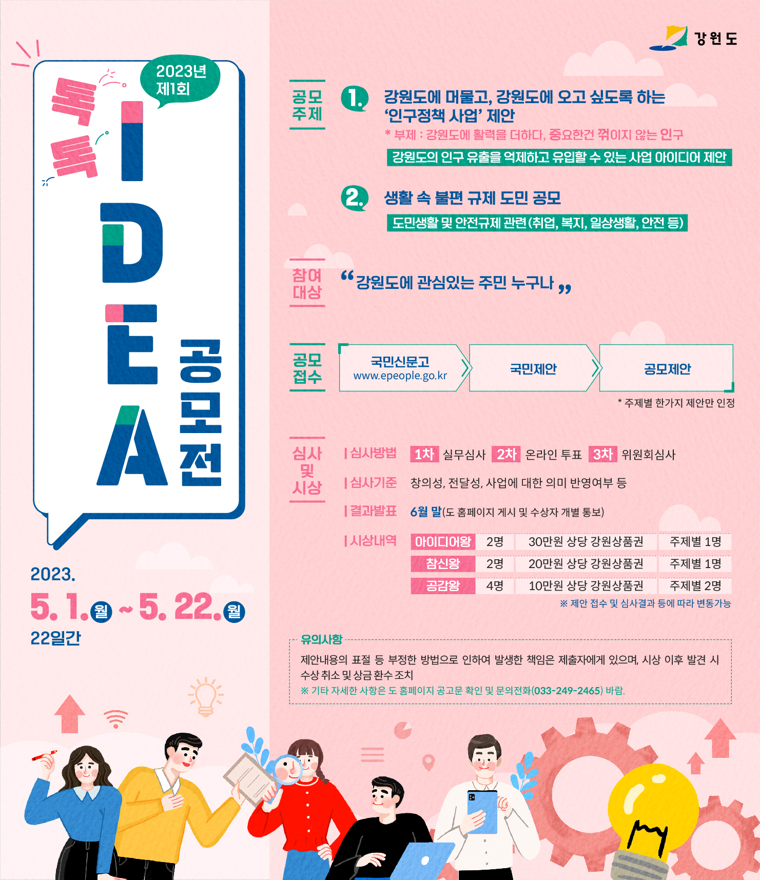 1. 공 모 명: 2023년 「제1회 톡톡 Idea 공모전」(생활 속 불편 규제 도민 공모)