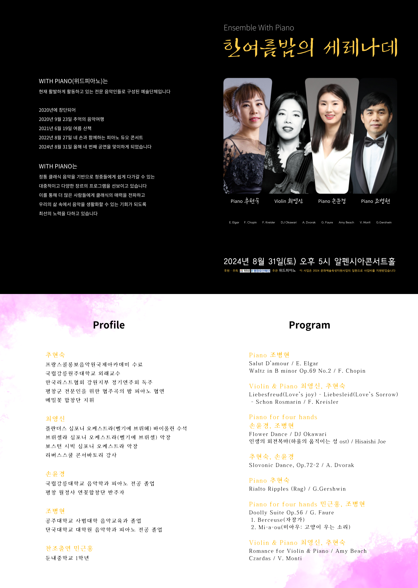 Piano 추현숙 / Violin 최영신 / Piano 손윤경 / Piano 조병현
