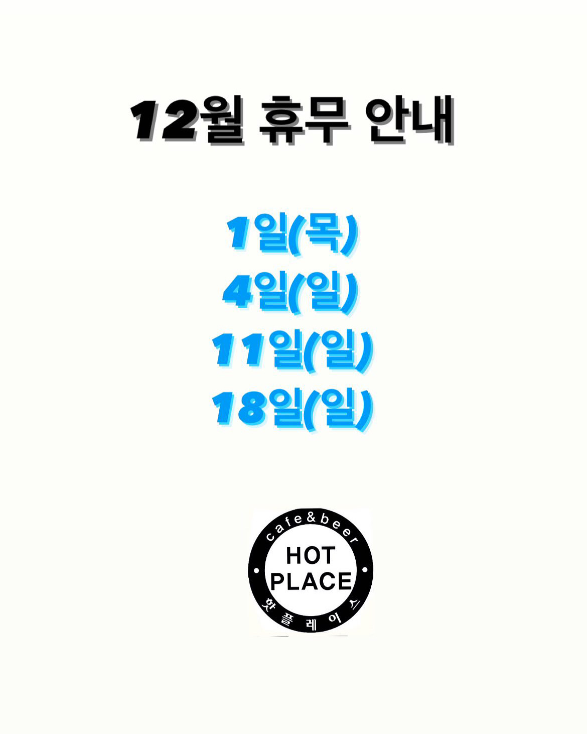 ☑️ 핫플레이스 [12월 휴무안내]