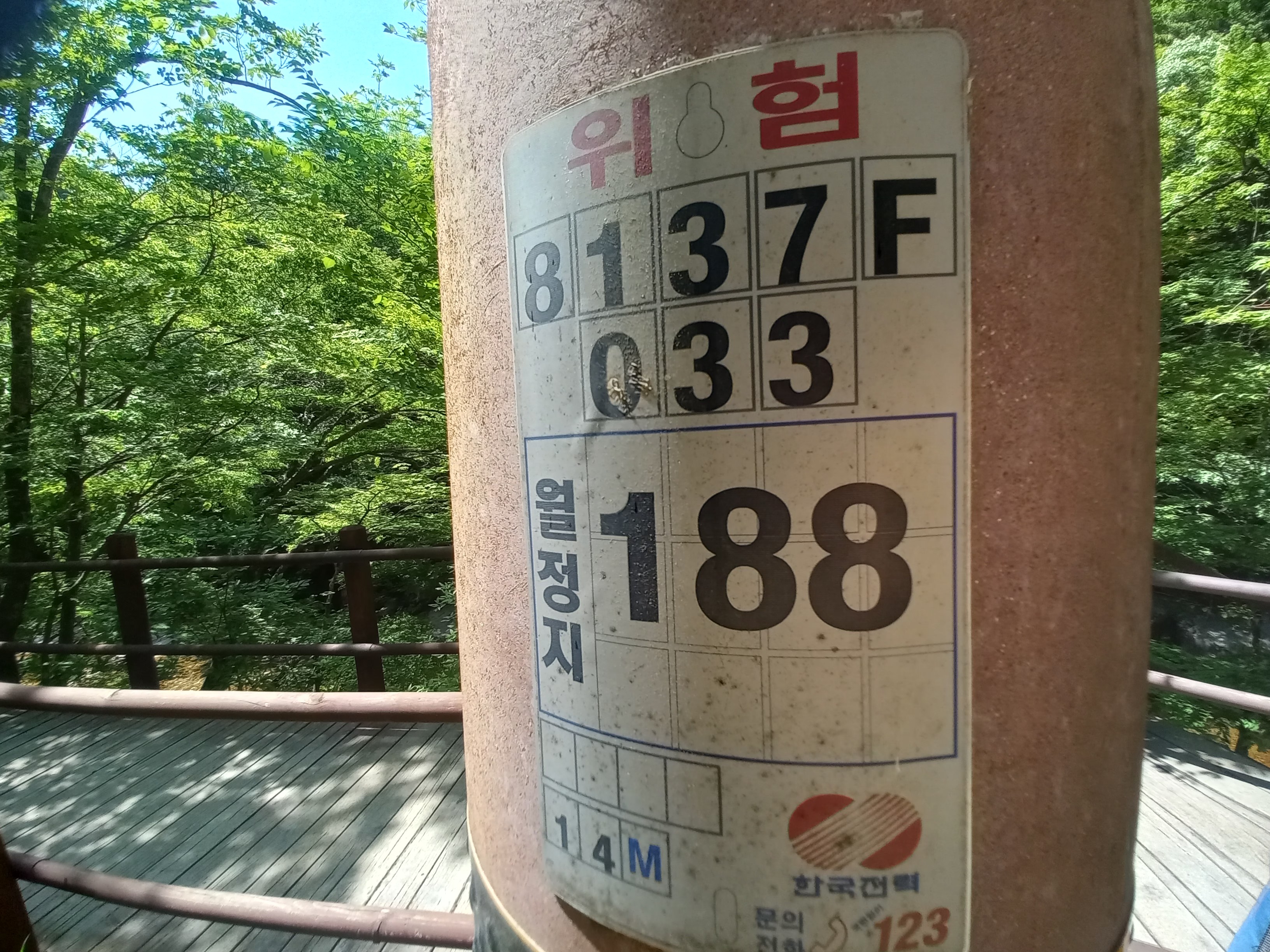 아울러, 출렁다리 근처 (전봇대 위치: 월정지 188)에 지날 무렵