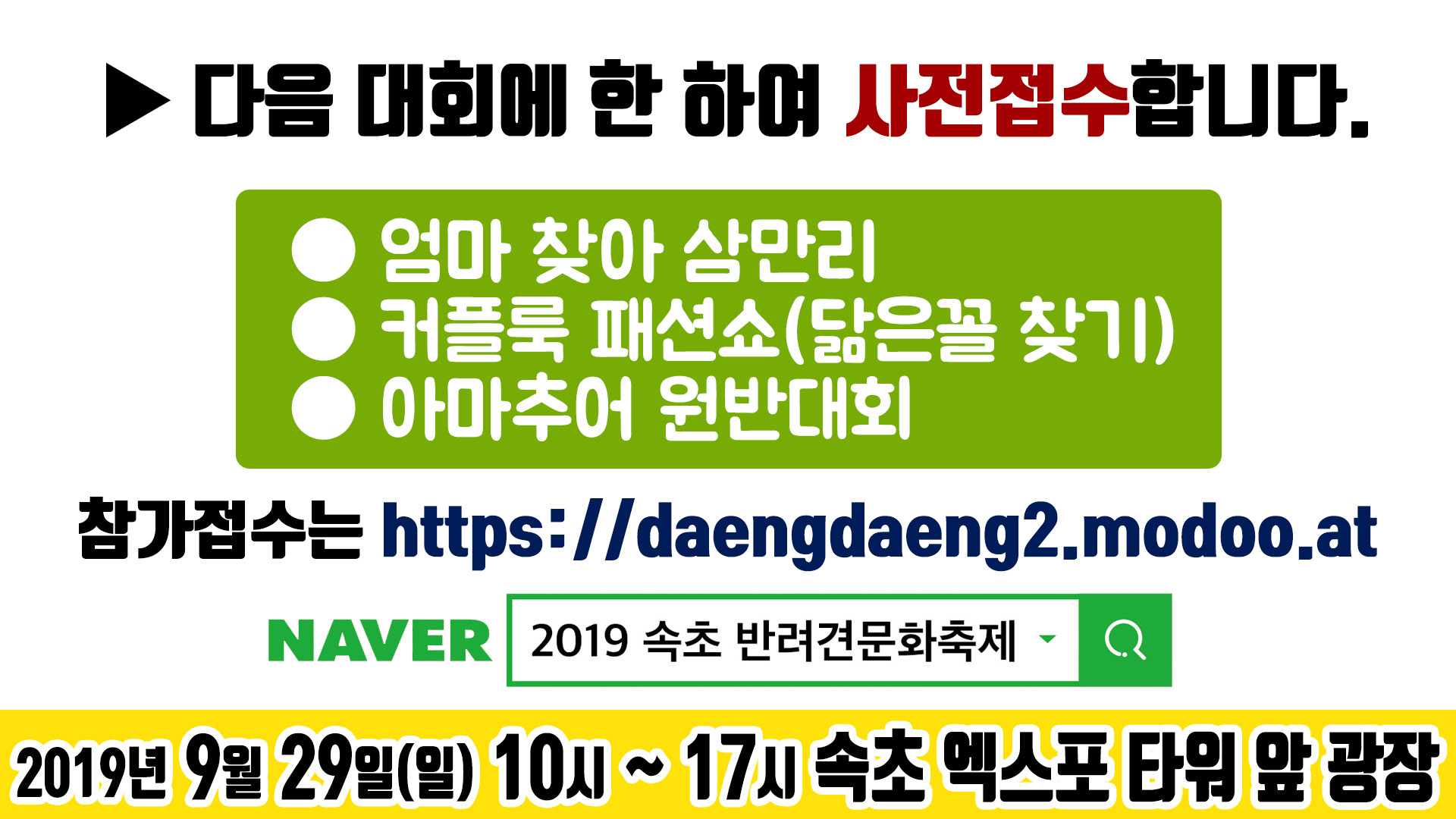 네이버에서 “2019속초반려견문화축제”를 검색하세요!!!