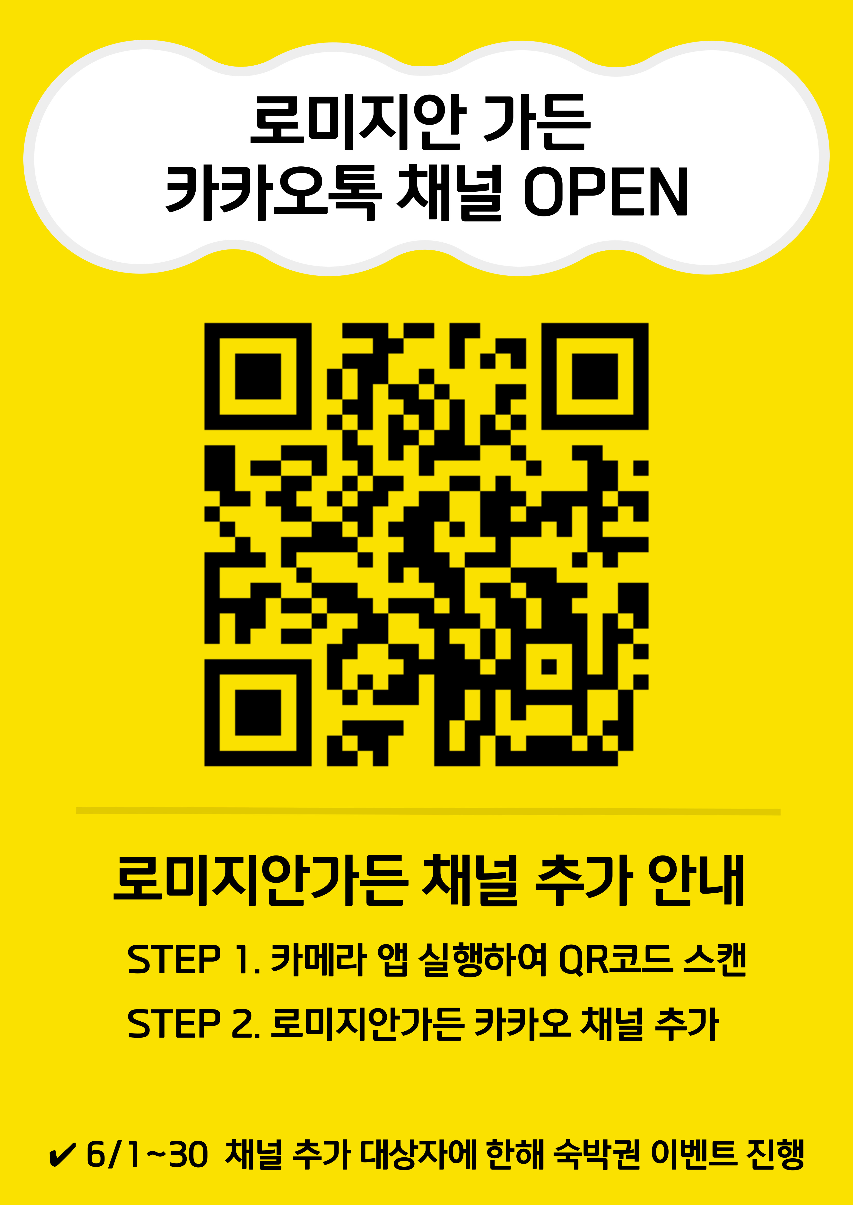 [로미지안가든] 6월 카카오 채널 추가 이벤트 (30만원 상당 1박 숙박권)