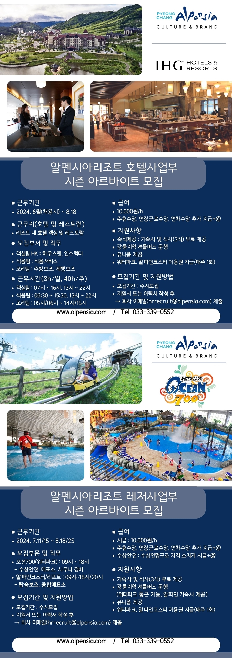 알펜시아리조트에서 여름시즌 단기 아르바이트를 모집합니다.