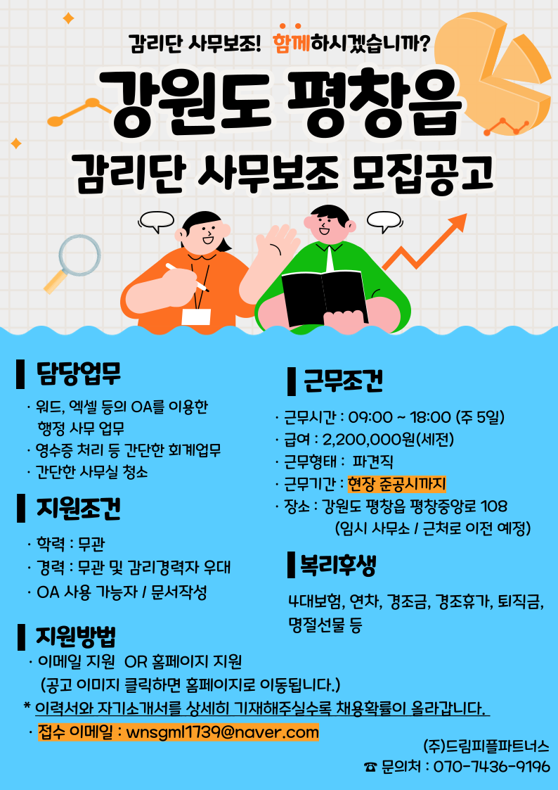 평창 감리단 사무보조직 채용합니다 (단순 사무보조 업무)