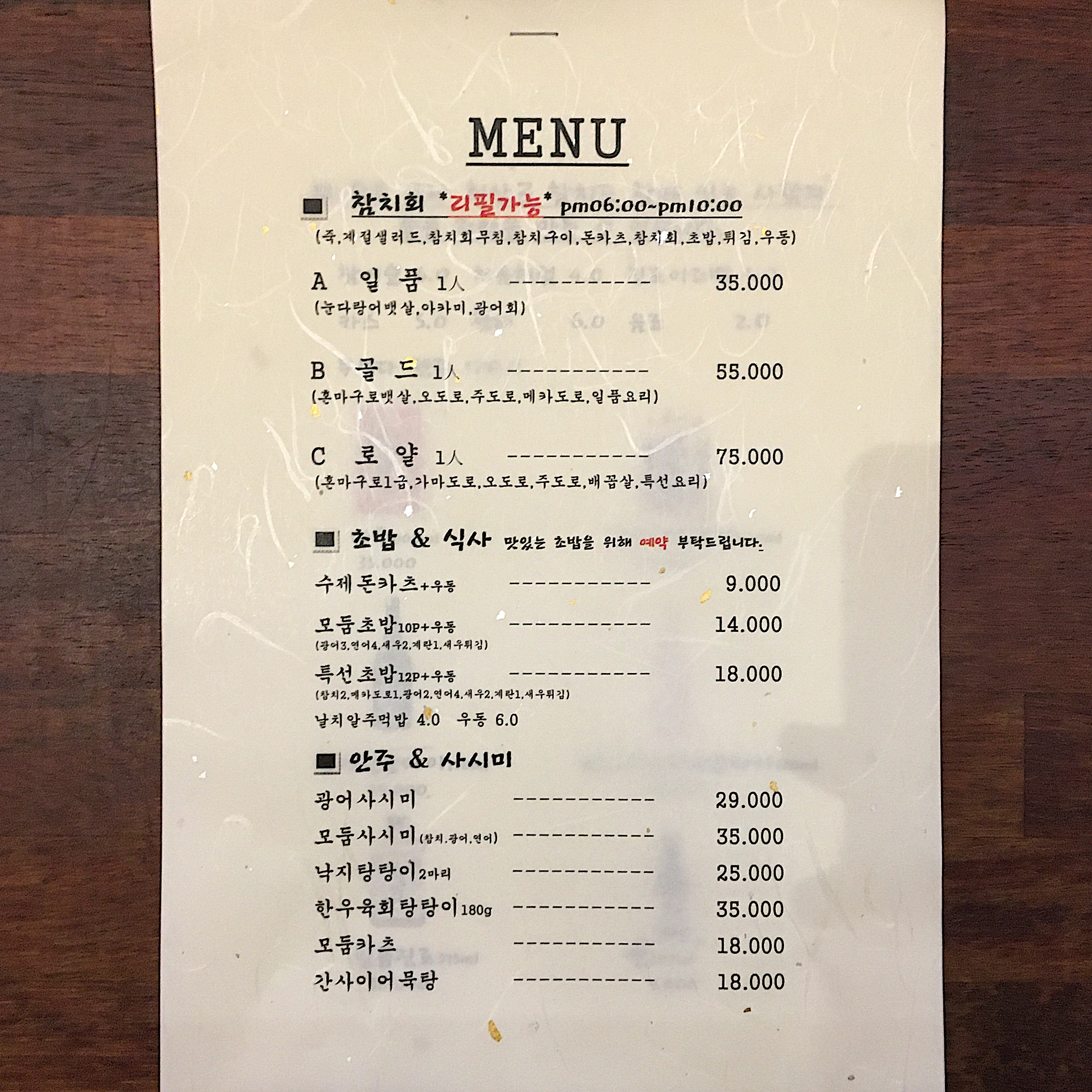 초밥과 낙지탕탕이 육회탕탕이를 추가하여 그동안 쉽게 접하지 못한