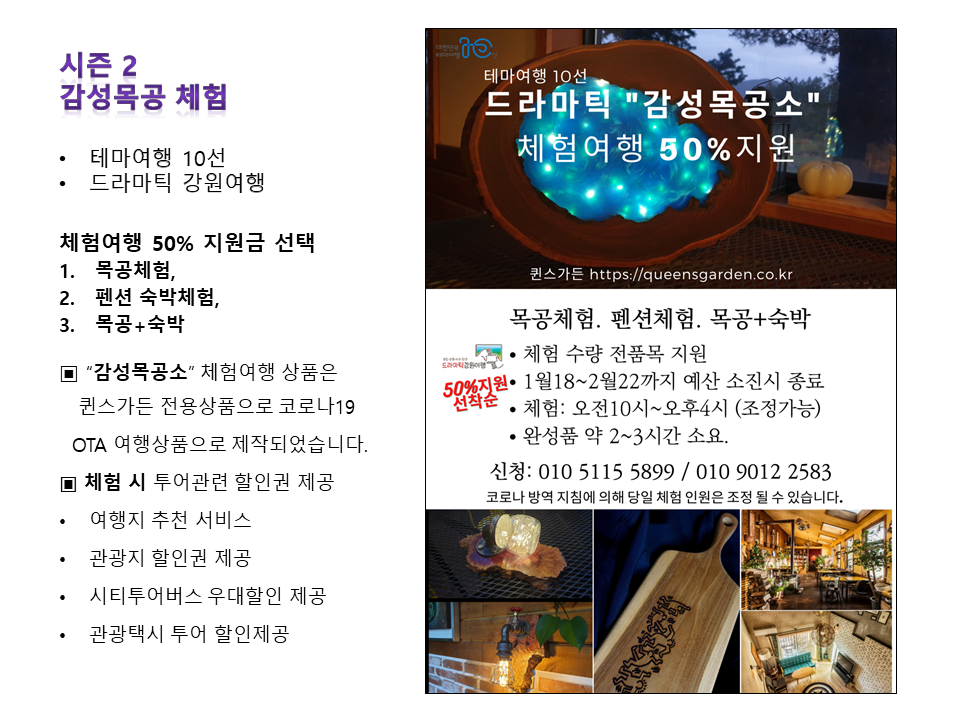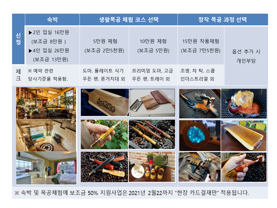 테마여행 10선 목공체험 50% 지원 받습니다.