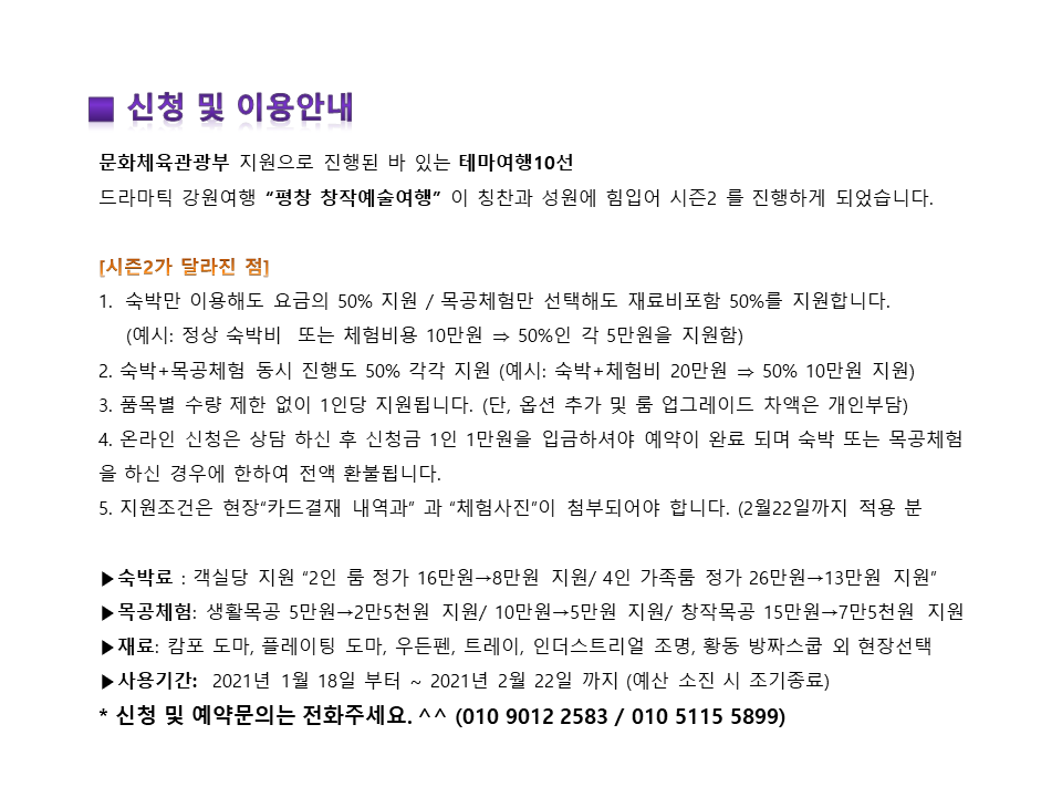 드라마틱 강원여행 평창 창작예술여행 이 많은 분들의 칭찬과 성원에 힘입어